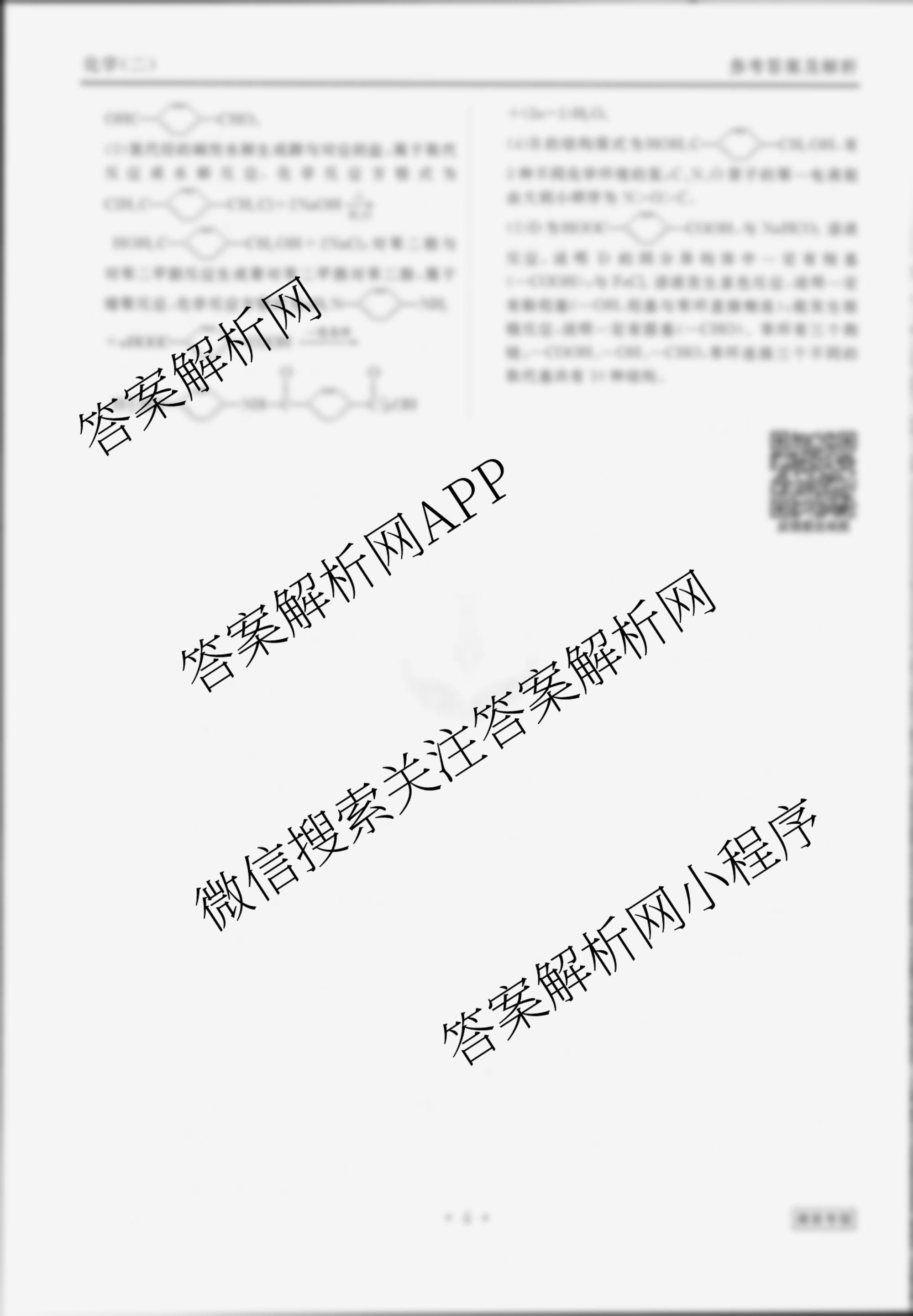 - [衡水金卷先享题]调研卷 2024年普通高等学校招生全国统一考试模拟试题(二)2化学(新教材A)答案