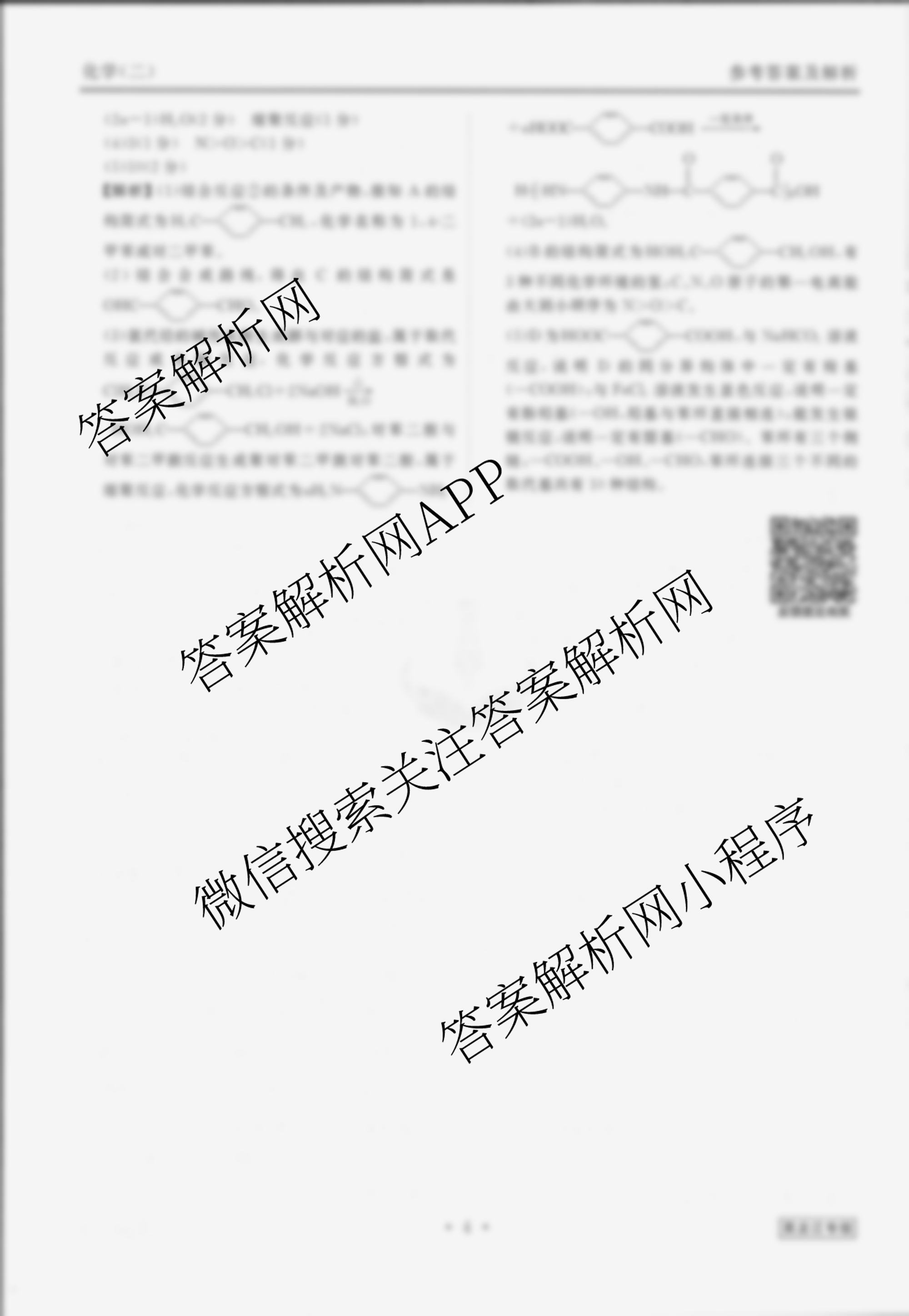 - [衡水金卷先享题]调研卷 2024年普通高等学校招生全国统一考试模拟试题(二)2化学(新教材A)答案