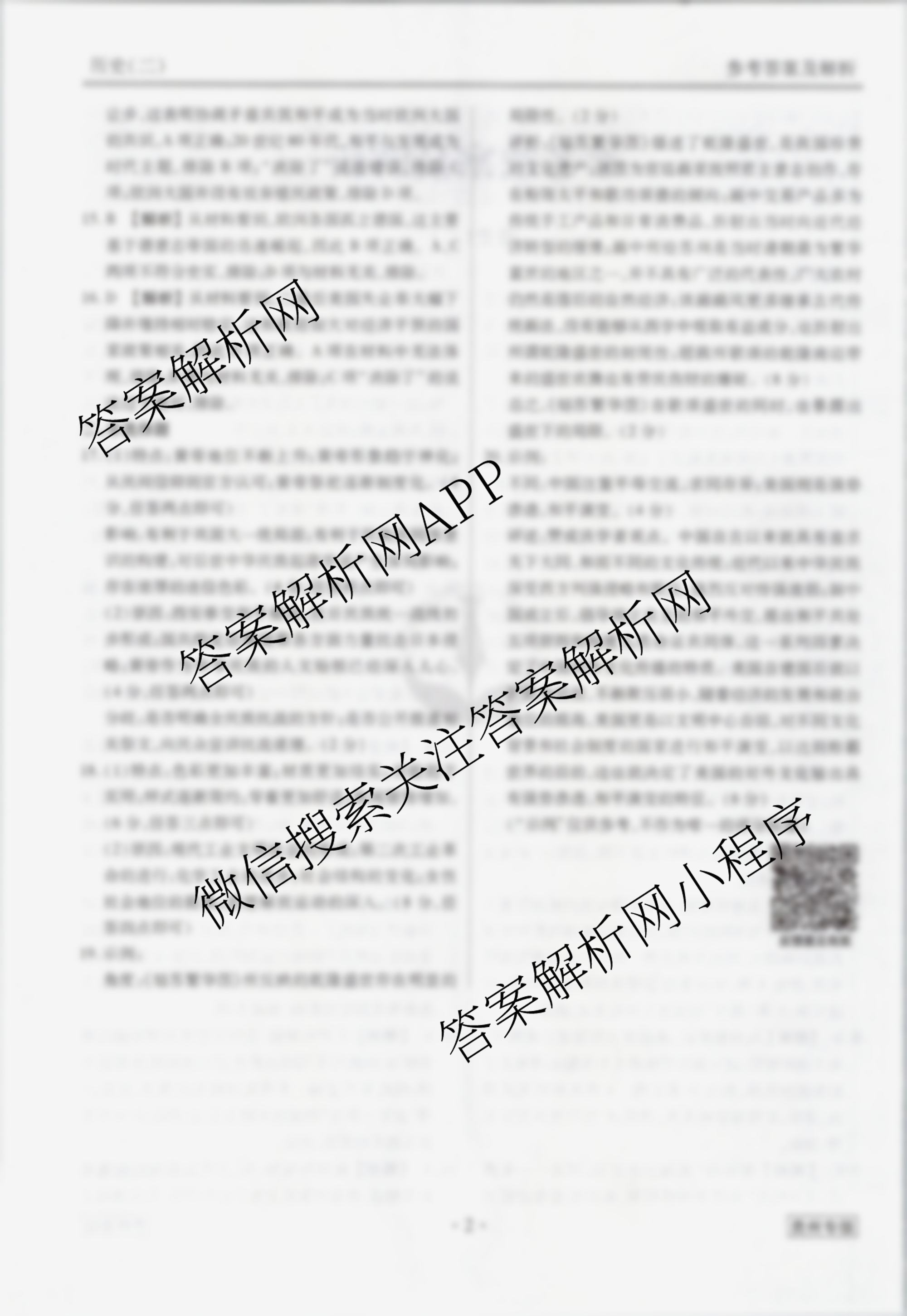 - (高三)衡水金卷先享题调研卷 2024年普通高中学业水平选择性考试模拟试题(二)2历史(河北专版)答案