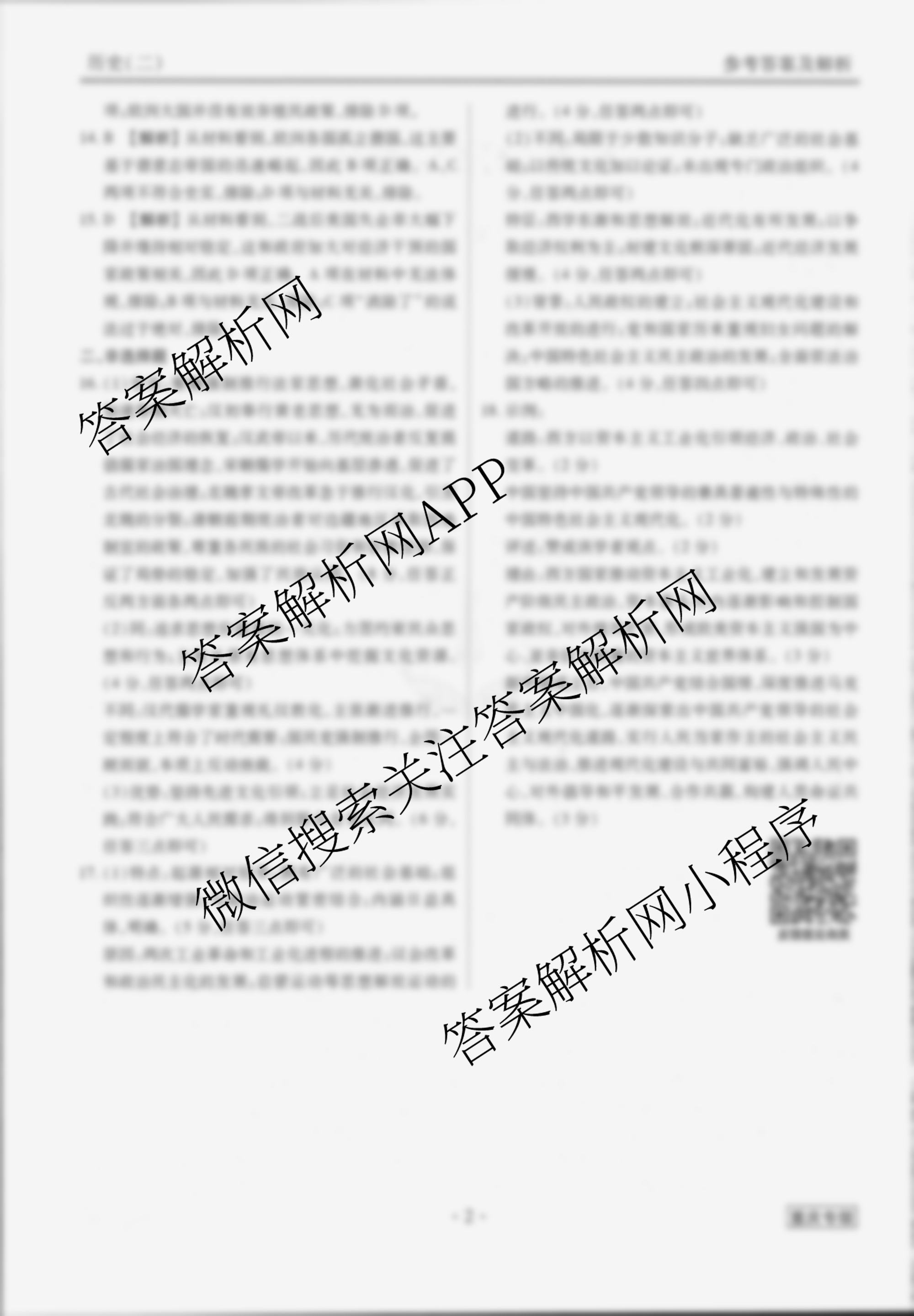- (高三)衡水金卷先享题调研卷 2024年普通高中学业水平选择性考试模拟试题(二)2历史(河北专版)答案