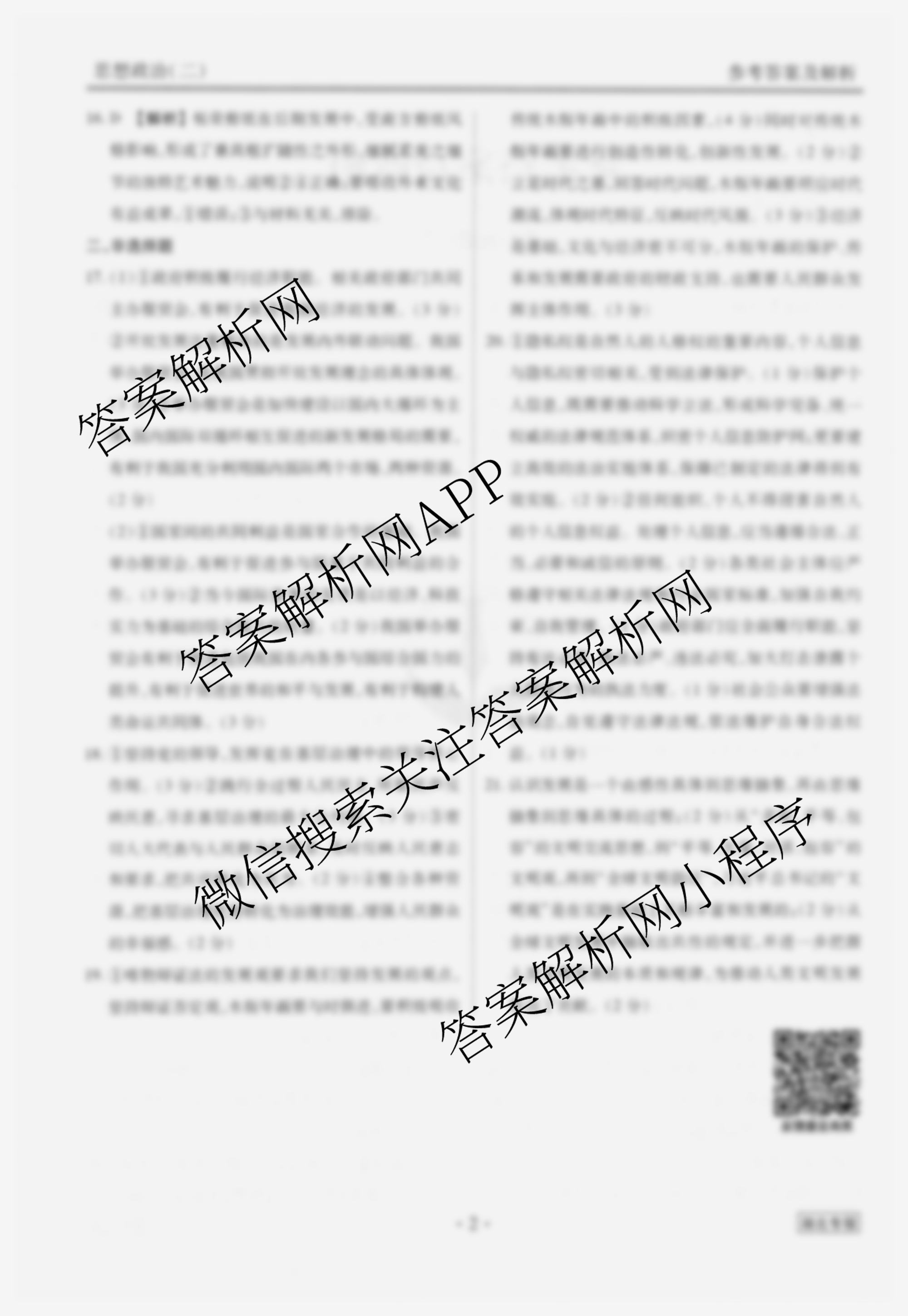(衡水金卷先享题)调研卷 2024年普通高中学业水平选择性考试模拟试题(二)2政治(湖北专版)答案