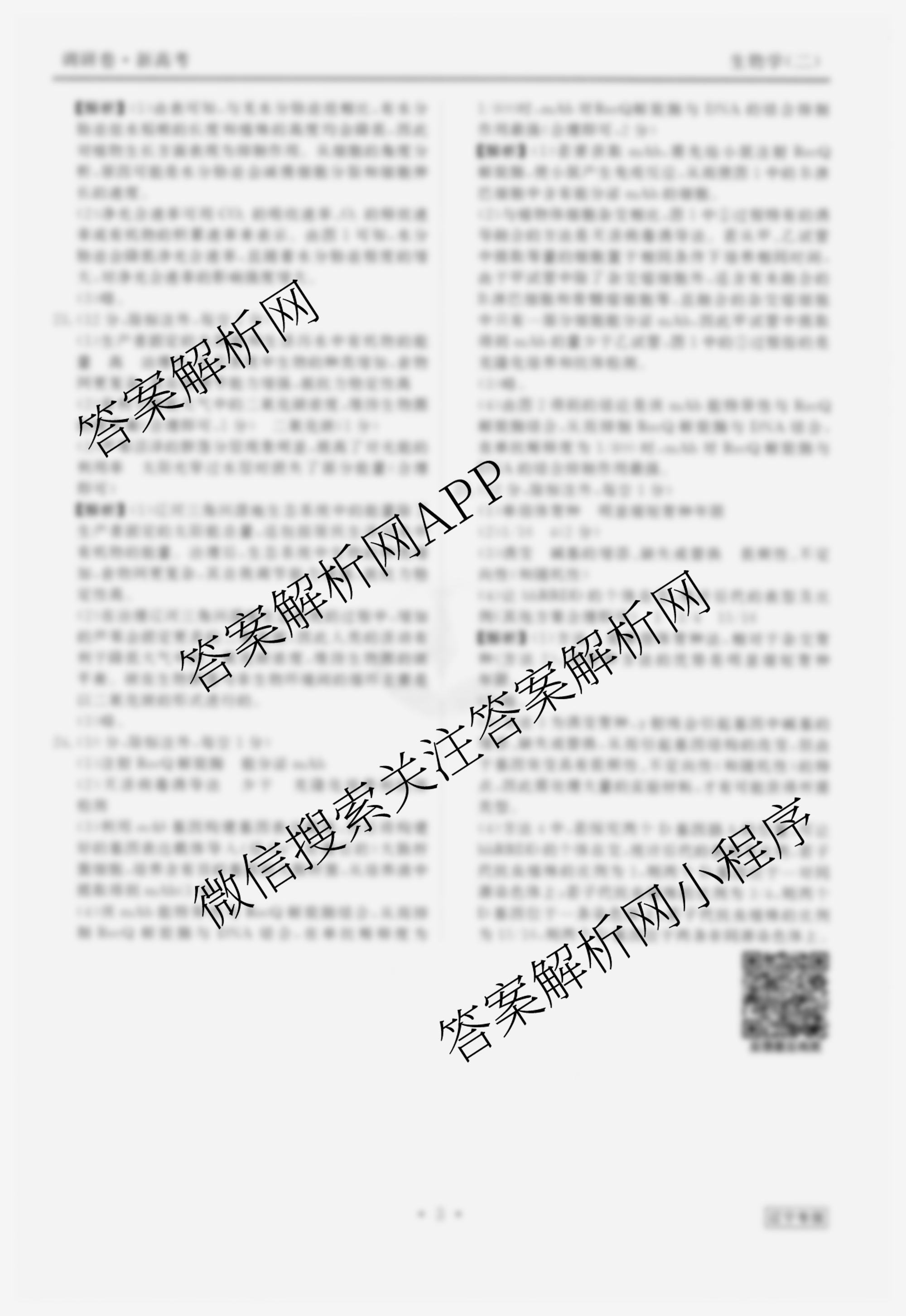 (衡水金卷先享题)调研卷 2024年普通高中学业水平选择性考试模拟试题(二)2生物(辽宁专版)答案