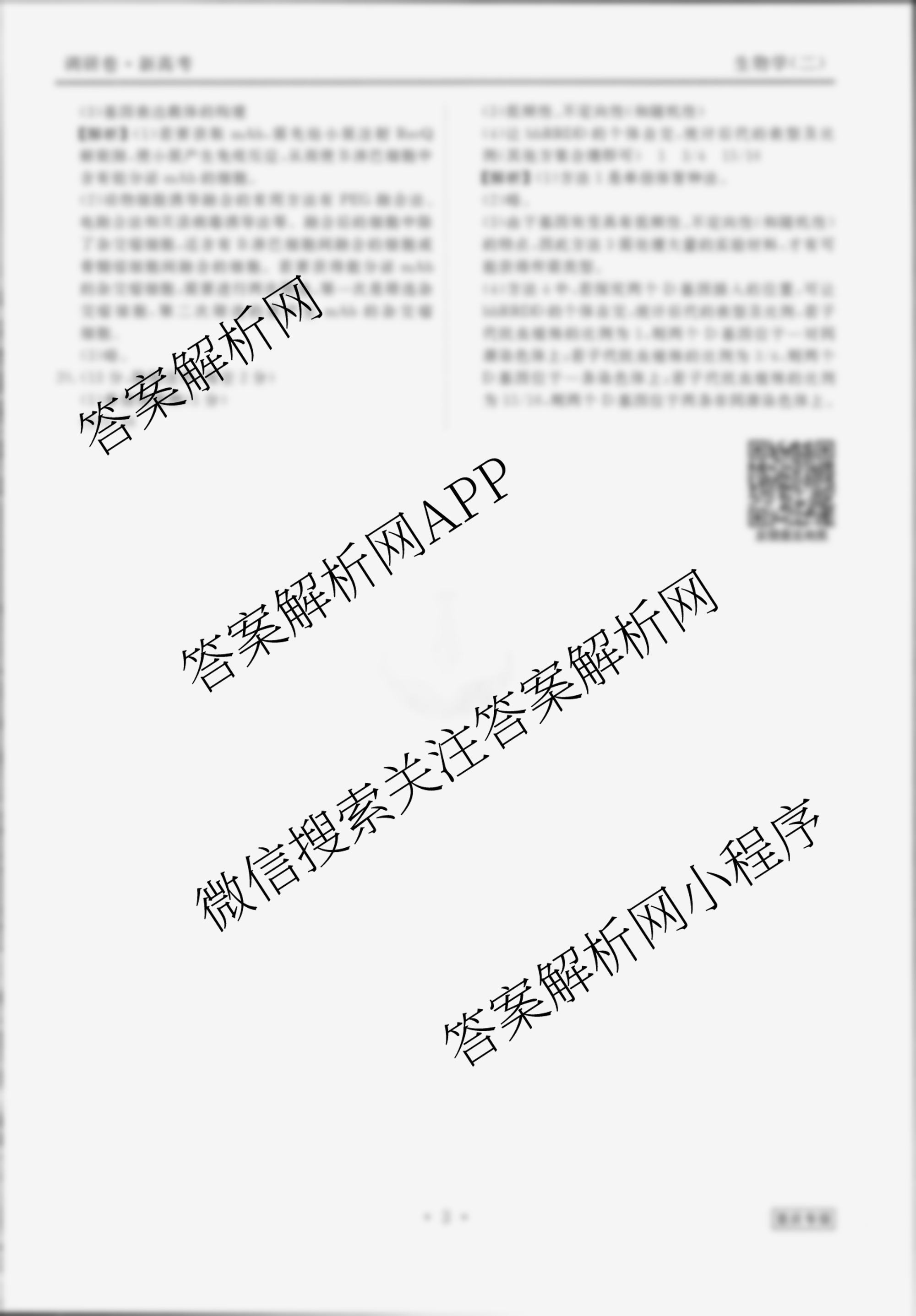 (衡水金卷先享题)·调研卷 2024年普通高中学业水平选择性考试模拟试题(二)2生物(重庆专版)答案