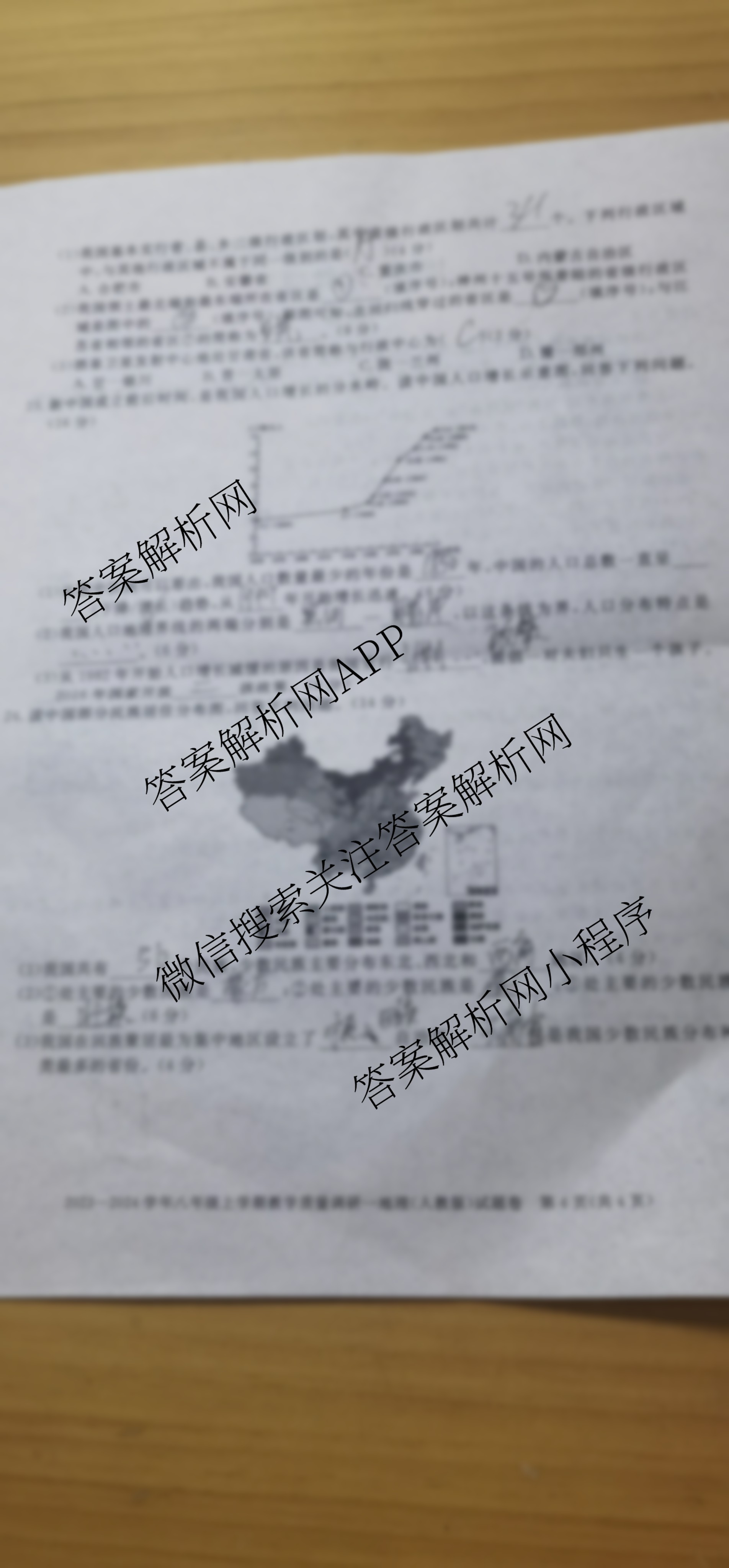 - [八年级]安徽省2023~2024学年上学期教学质量调研一地理(人教版)答案
