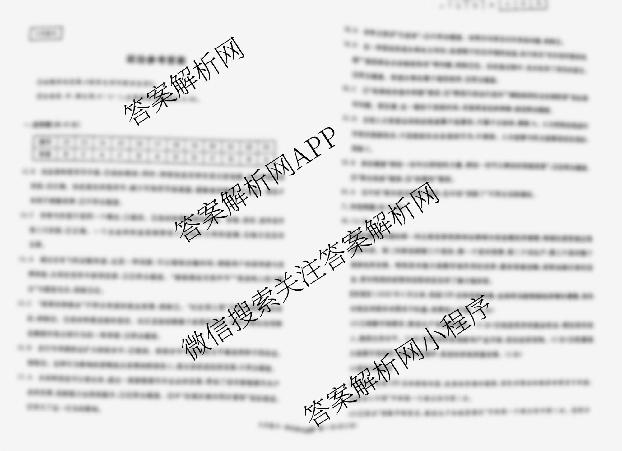 - 2024届[高三]国考1号4·第4套·阶段性考试(一)文综答案