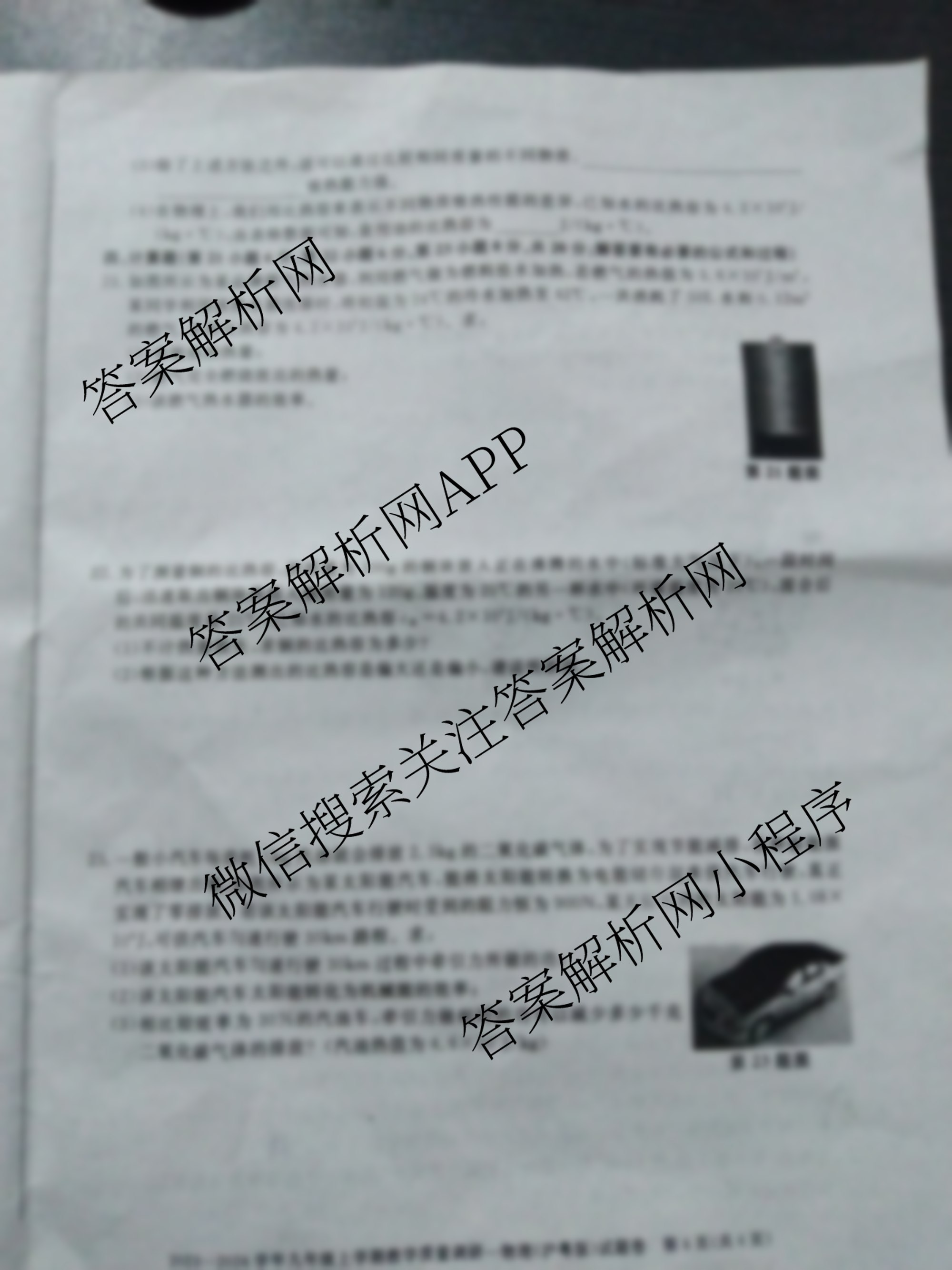 - [九年级]安徽省2023~2024学年上学期教学质量调研一物理(沪粤版)试题