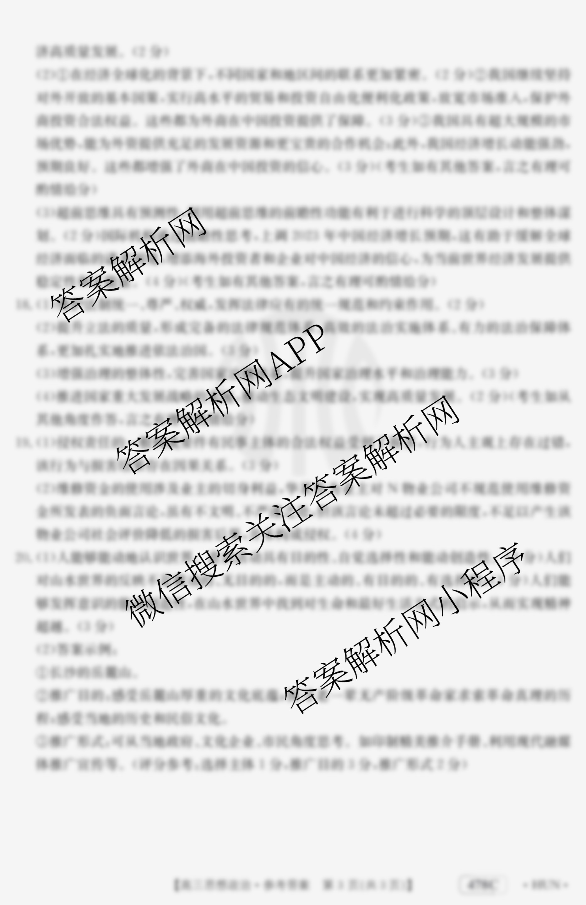 - (高三)2023届湖南省4月联考(478CHUN)政治答案