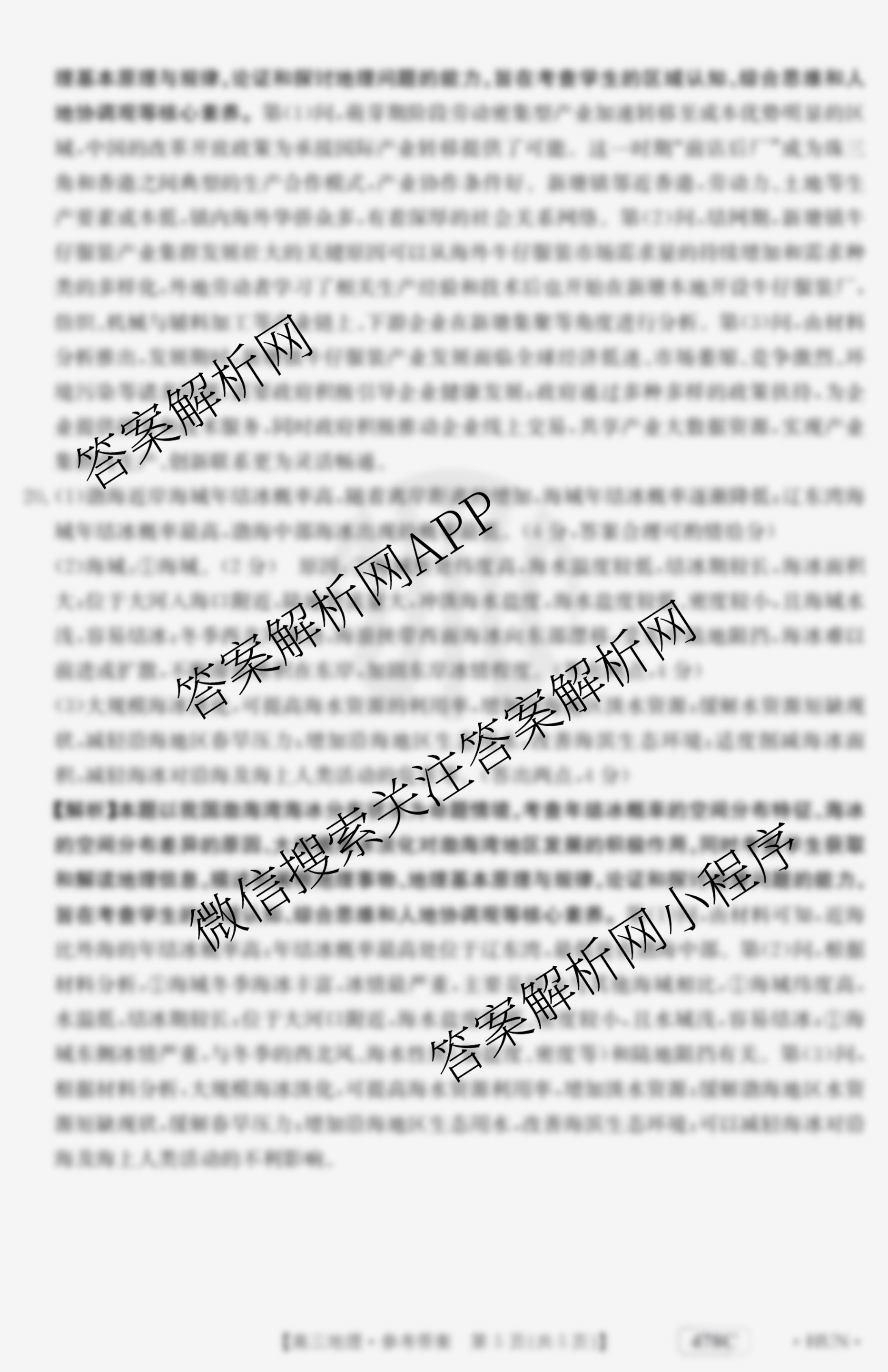- (高三)2023届湖南省4月联考(478C·HUN)地理答案