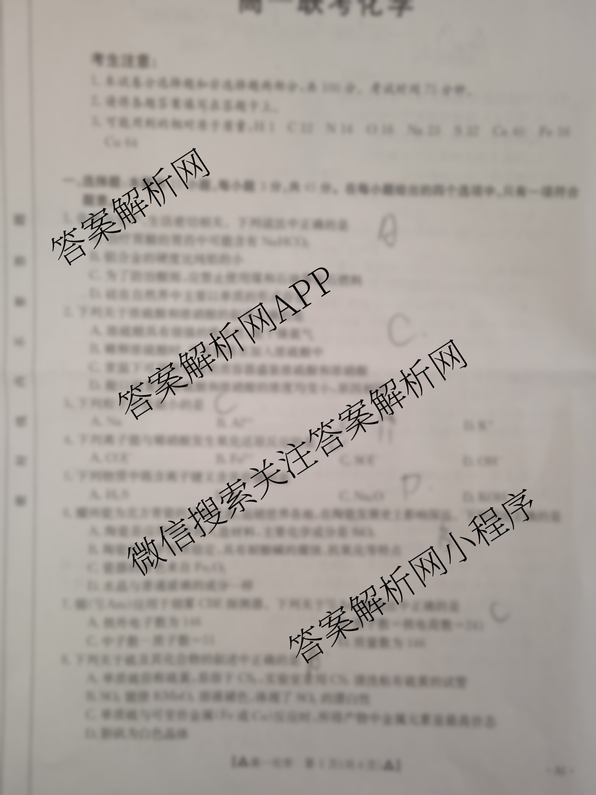 陕西省2022-2023高一3月联考(三个三角)化学试题,目前2026届炎德英才大联考答案网已经汇总了陕西省2022-2023高一3月联考(三个三角)化学试题的各科答案和试卷,获取更多金太阳答案解析,请在关注本站。