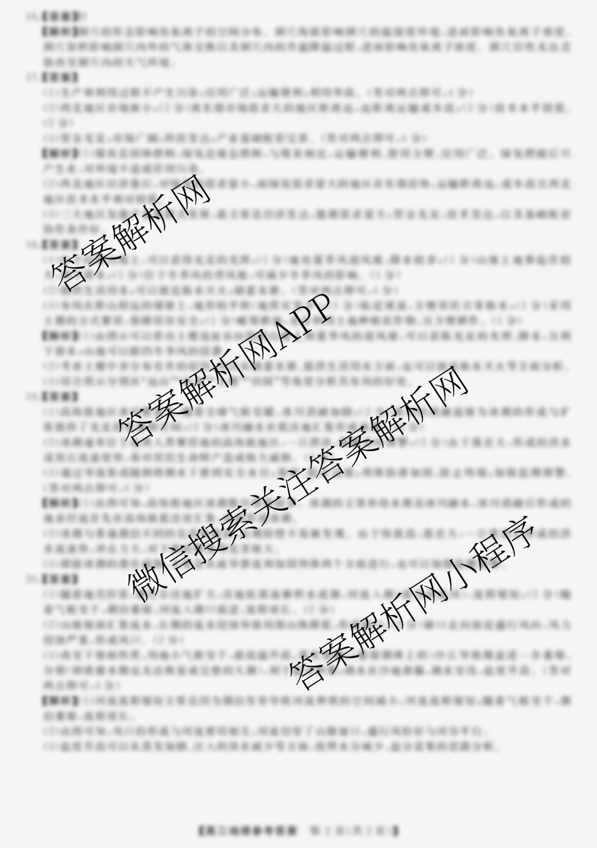 2023届[高三]天壹名校联盟·2月质量检测地理答案