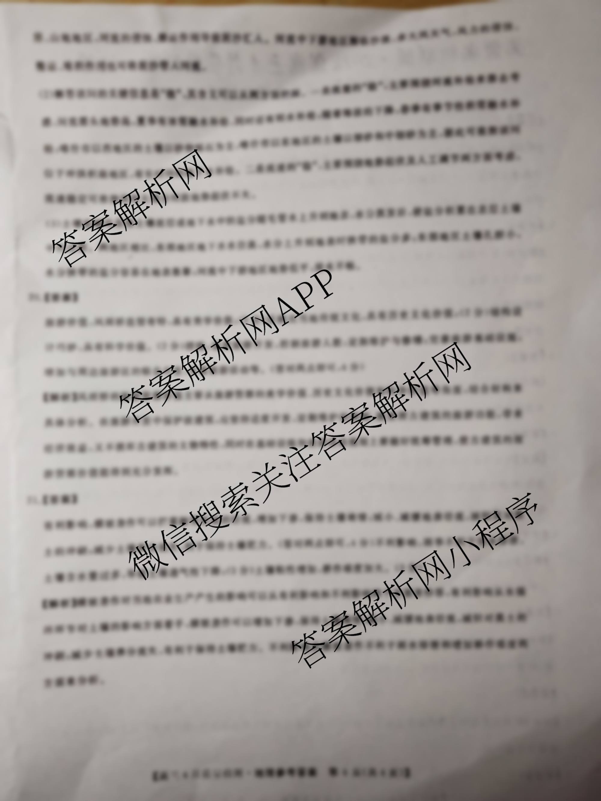 - 高三[天壹名校联盟]2022届4月质量检测地理答案