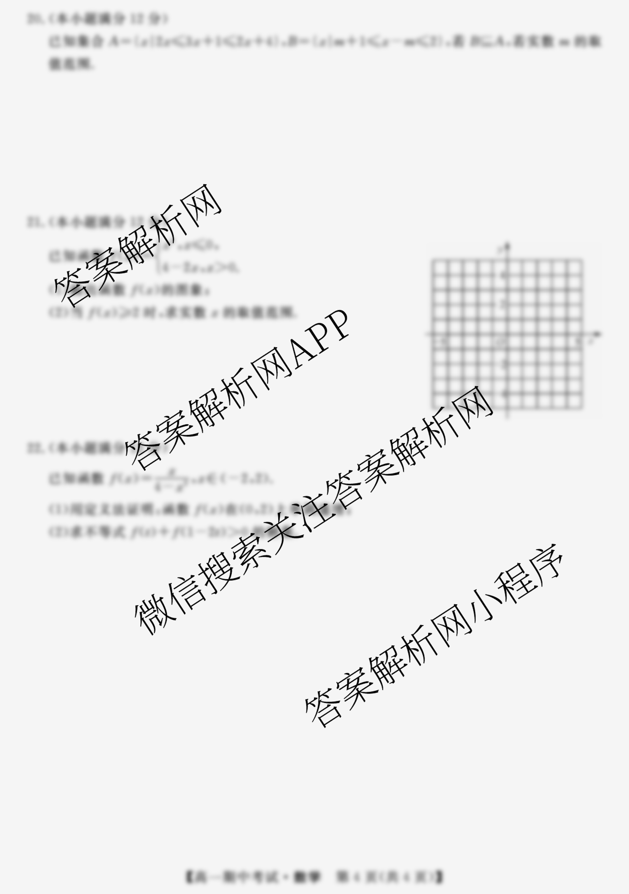 - [高一]天壹名校联盟2021年下学期期中考试数学试题