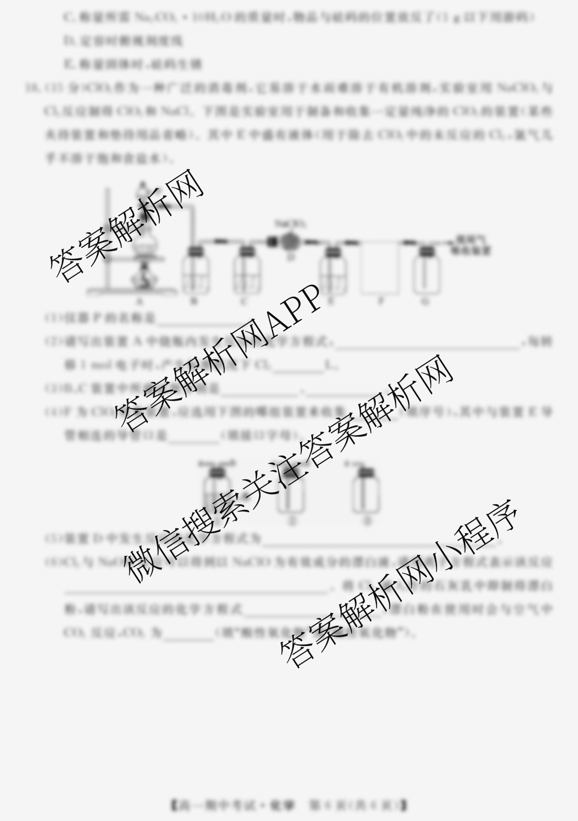 - [高一]天壹名校联盟2021年下学期期中考试化学试题