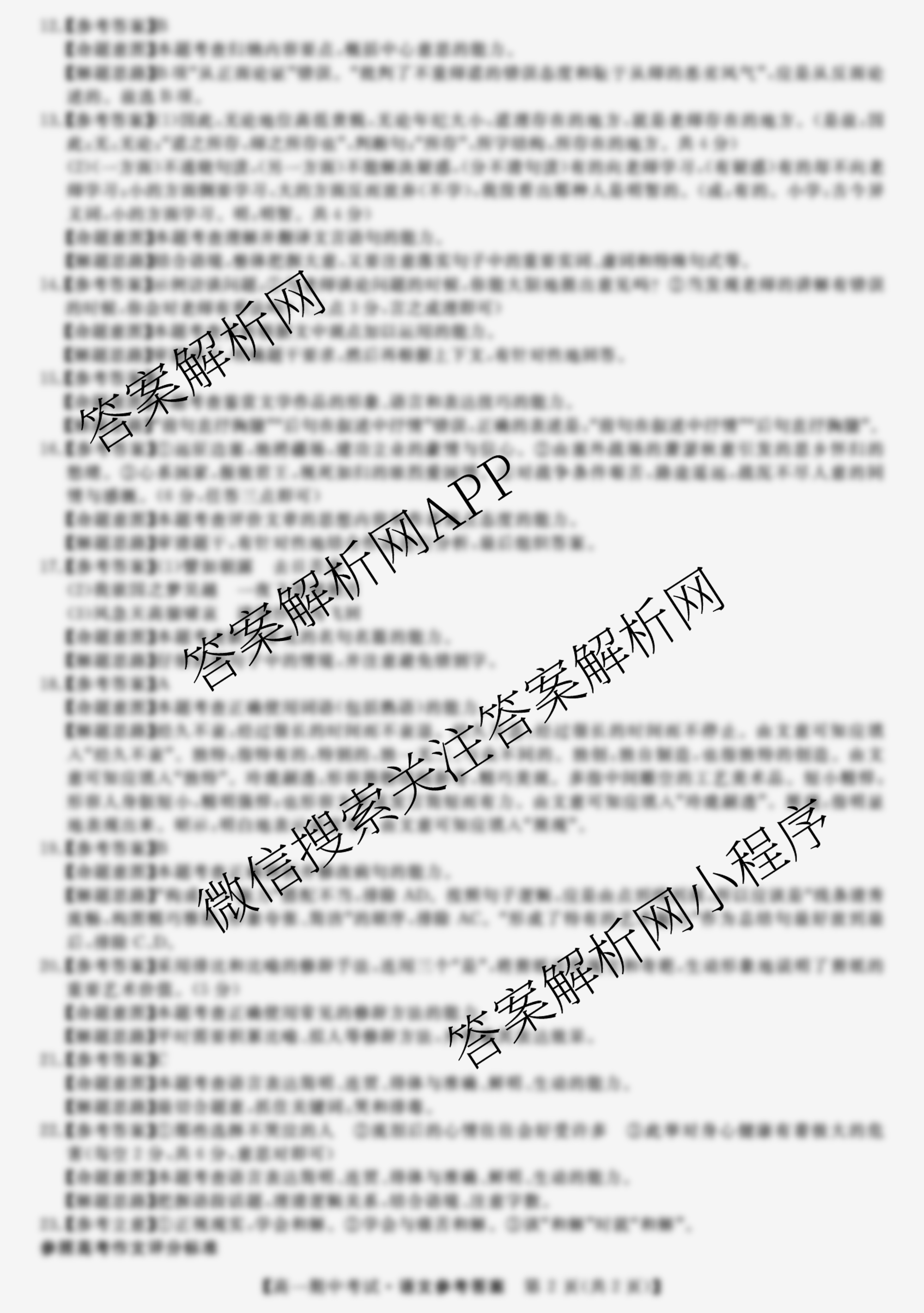 - [高一]天壹名校联盟2021年下学期期中考试语文答案