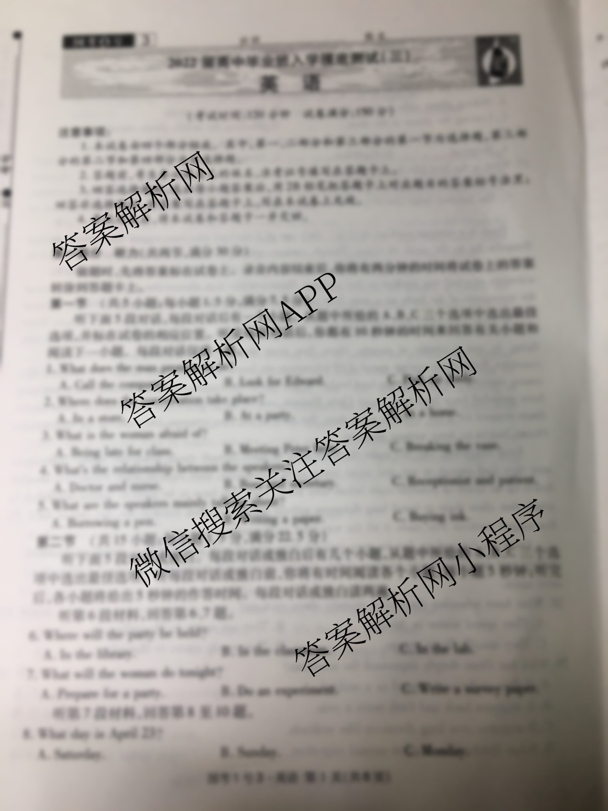 国考1号3·2022届高中毕业班入学摸底测试(三)3英语试题,目前2026届炎德英才大联考答案网已经汇总了国考1号3·2022届高中毕业班入学摸底测试(三)3英语试题的各科答案和试卷,获取更多国考1号答案解析,请在关注本站。