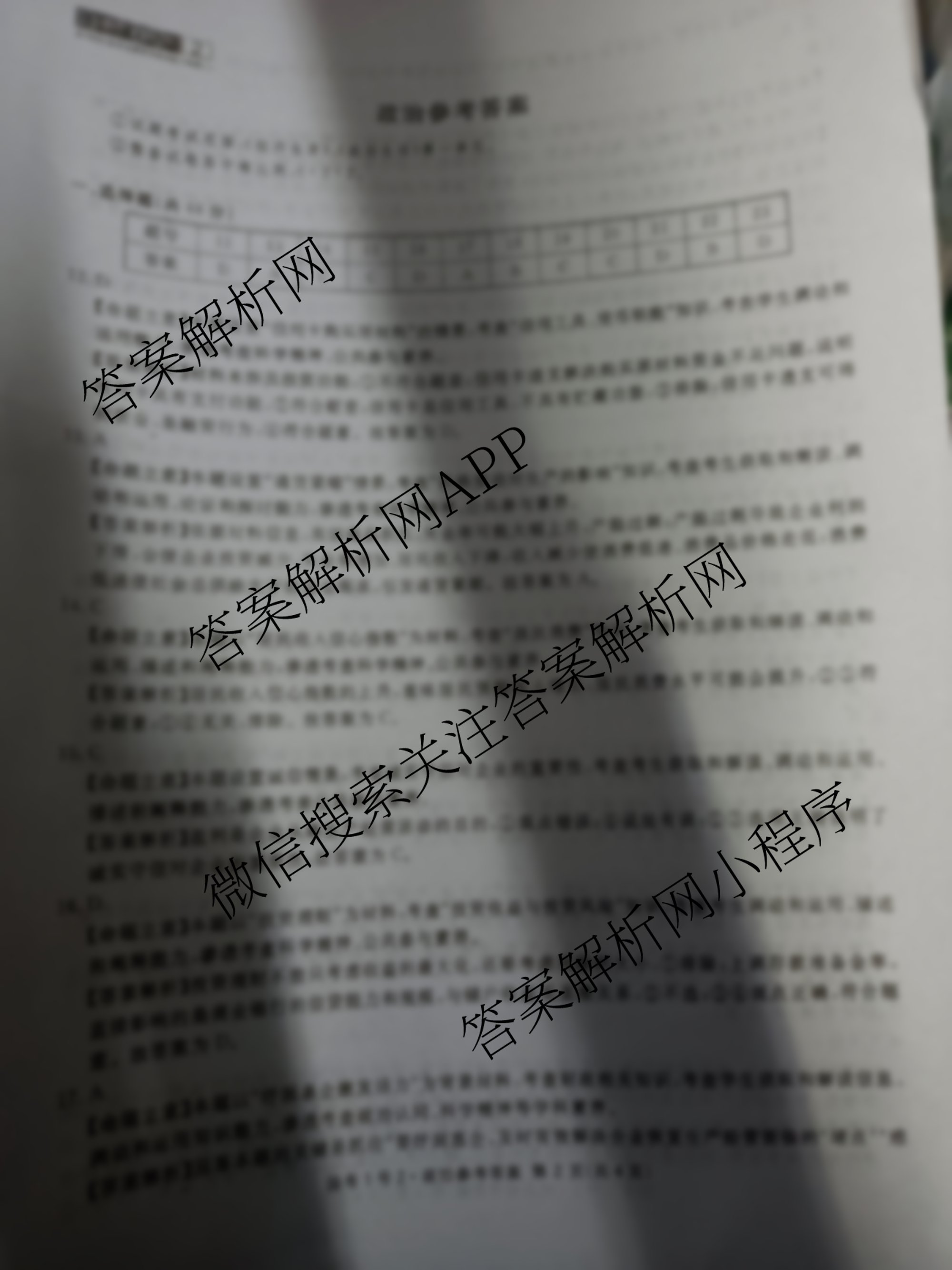 - 2021届(高三)国考1号·高中毕业班学月滚动能力检测(二)2政治答案