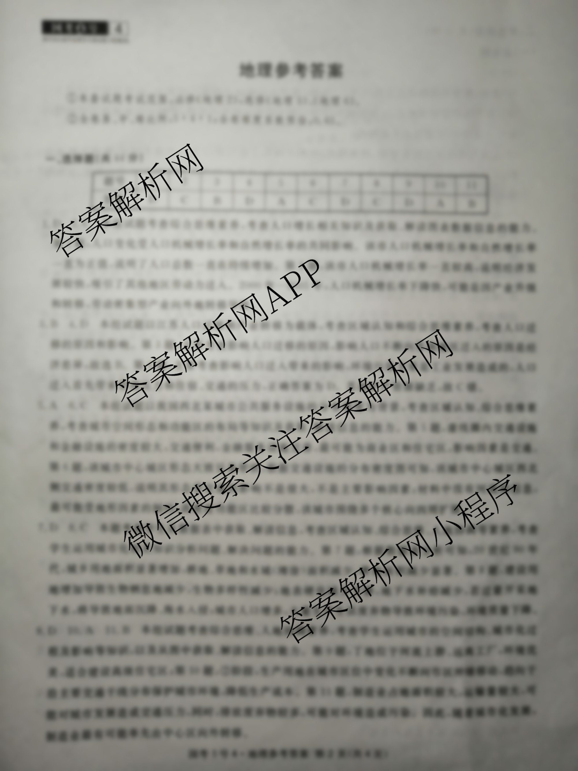 2021届[高三]国考1号·高中毕业班学月滚动能力检测(四)4地理答案