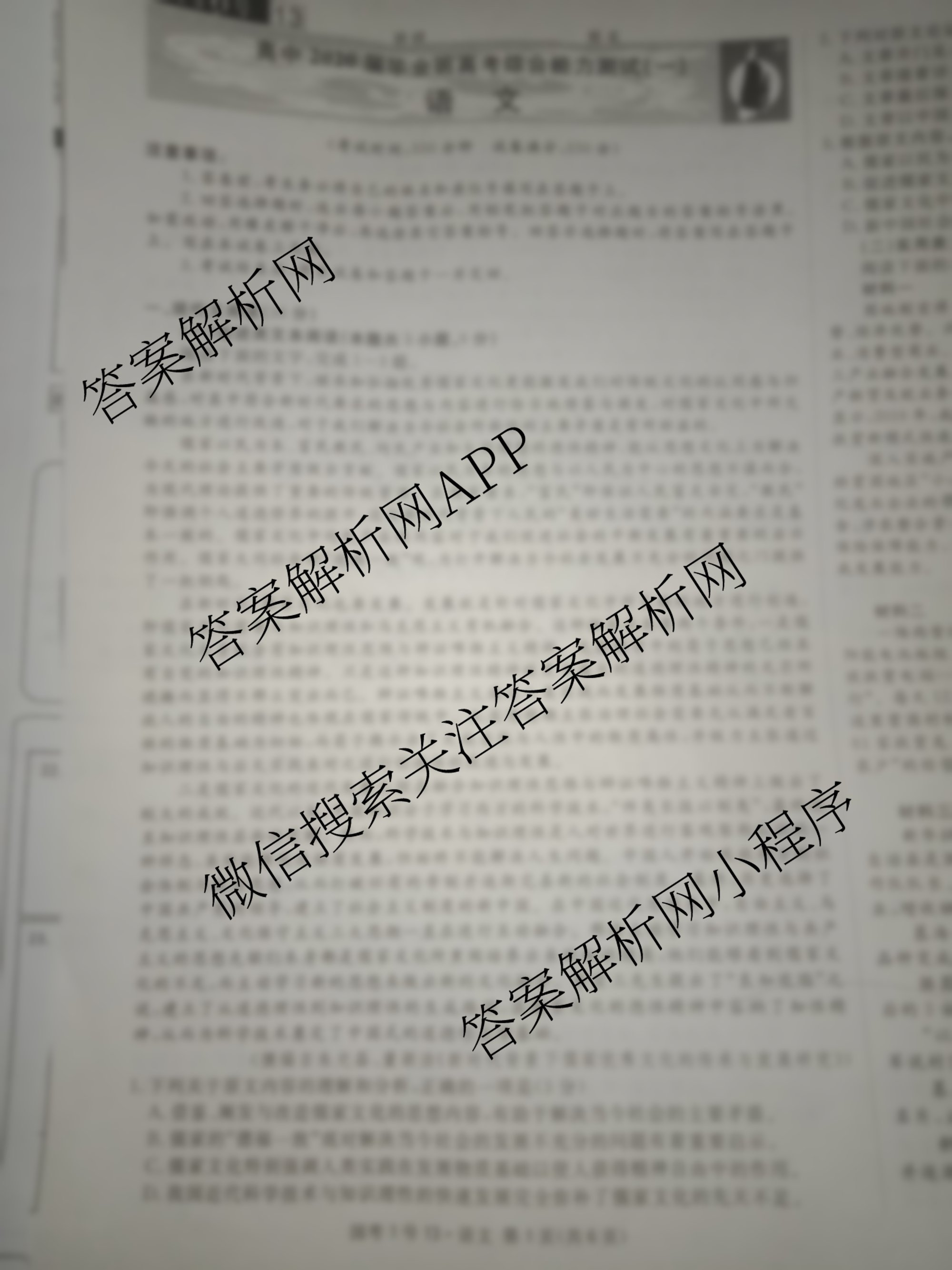2020届(国考1号)13高中毕业班高考综合能力测试(一)语文试题