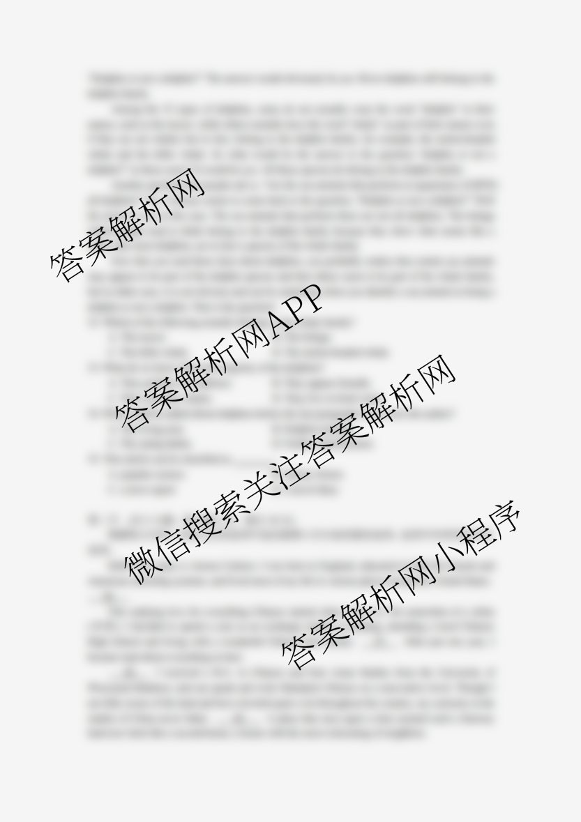 2020年武汉市高三网络质量检测英语试题,目前2026届炎德英才大联考答案网已经汇总了2020年武汉市高三网络质量检测英语试题的各科答案和试卷,获取更多大学课后答案答案解析,请在关注本站。