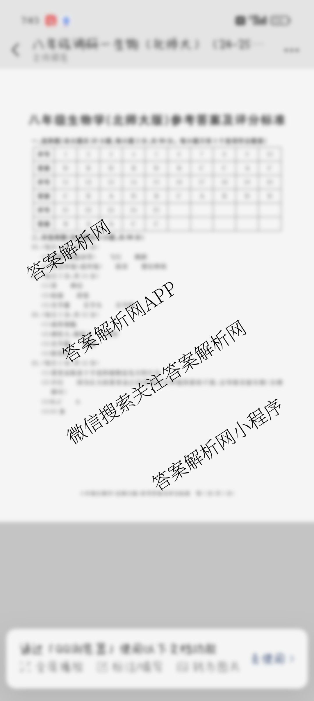 - 2024-2025八年级安徽省学年上学期教学质量调研一生物(北师大版)答案