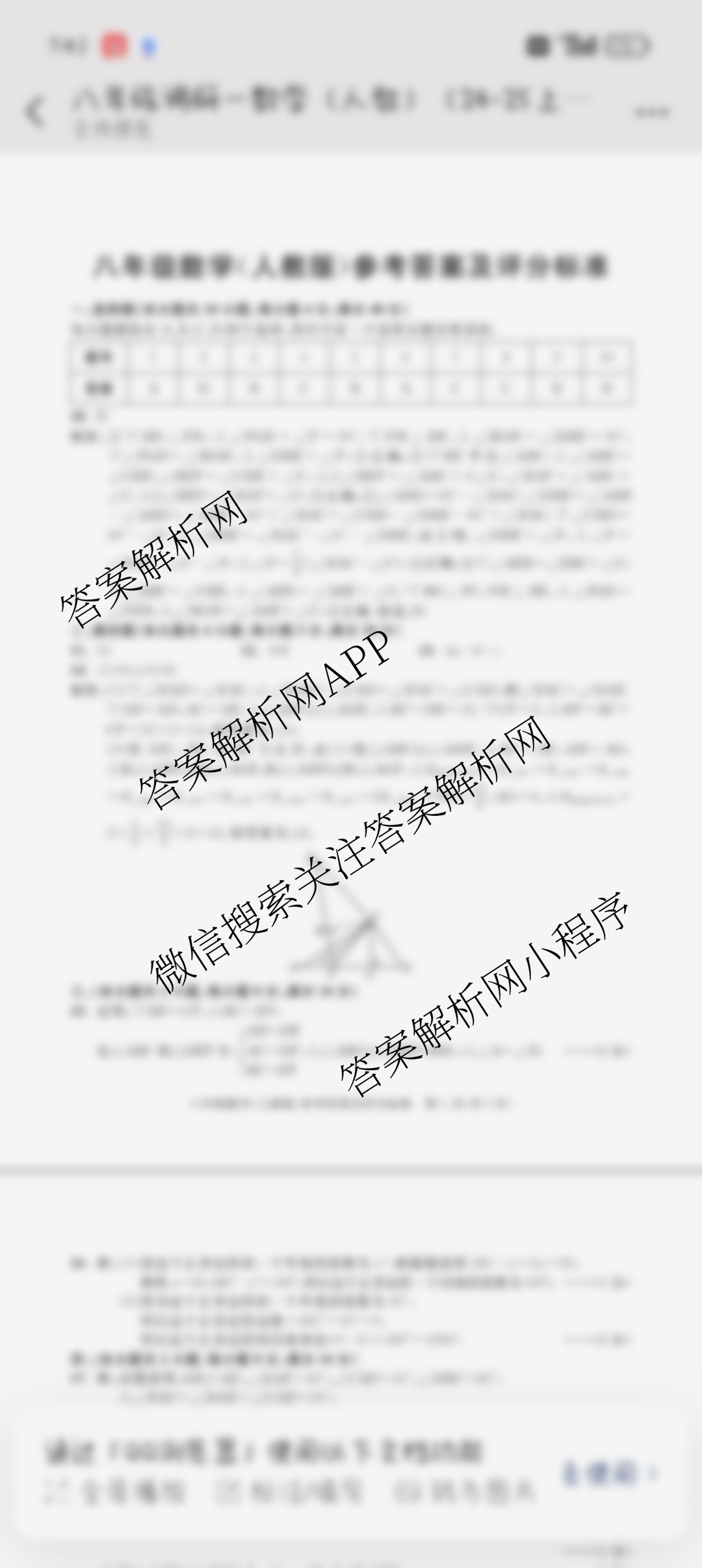 - 2024~2025安徽省学年[八年级]上学期教学质量调研一数学(人教版)答案