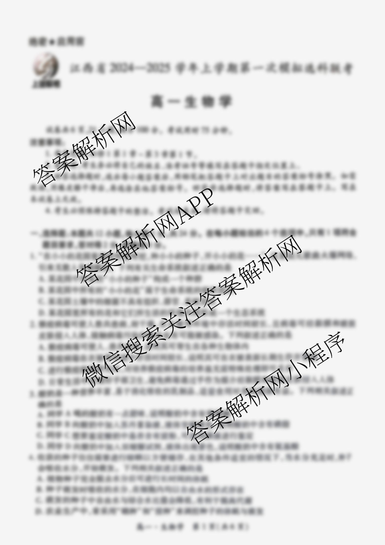 上进联考·江西省2024-2025学年上学期第一次模拟选科联考生物试题,目前2026届炎德英才大联考答案网已经汇总了上进联考·江西省2024-2025学年上学期第一次模拟选科联考生物试题的各科答案和试卷,获取更多上进联考答案解析,请在关注本站。