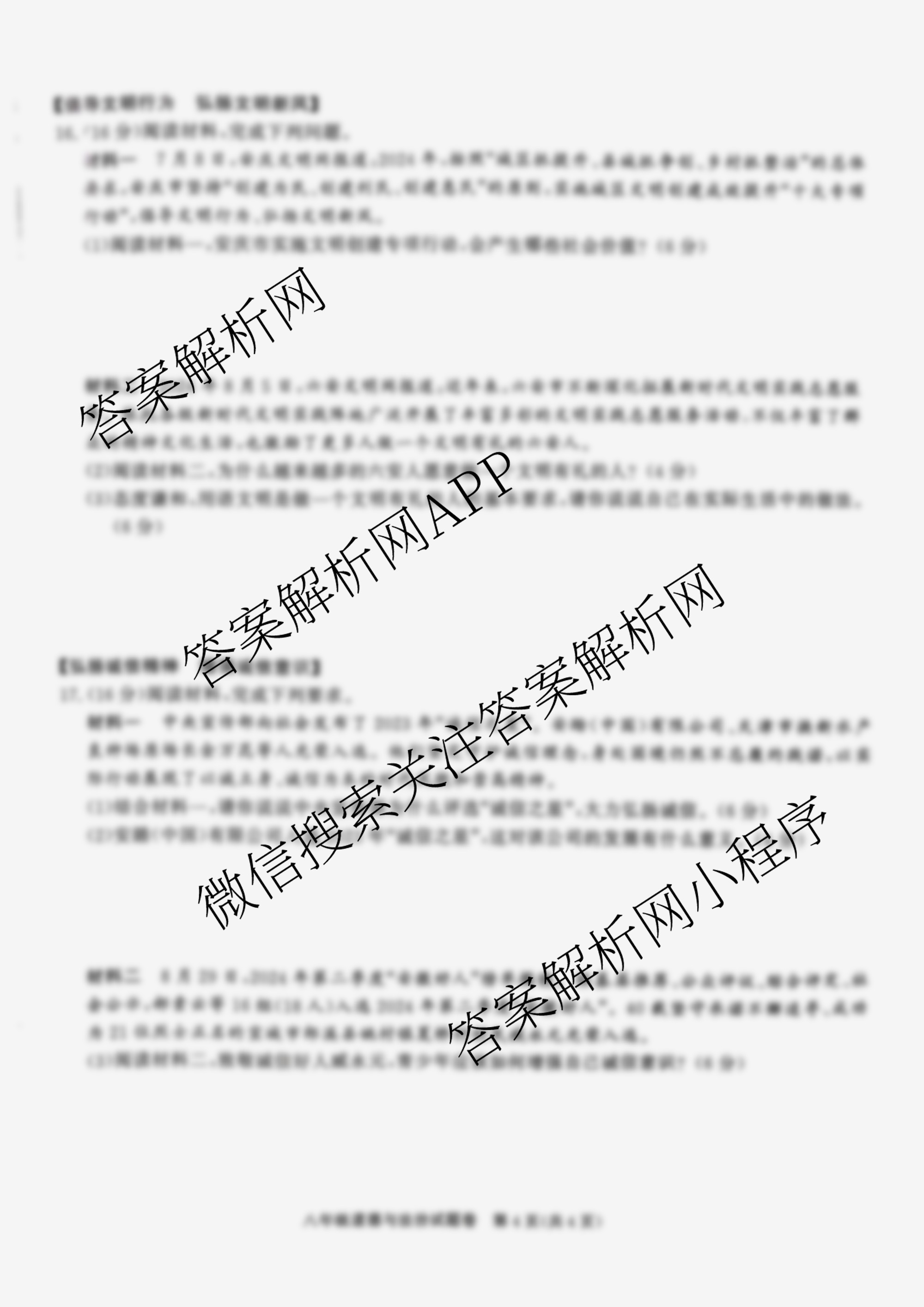 安徽省2024-2025学年八年级上学期期中教学质量调研(无标题)道德与法治试题,目前2026届炎德英才大联考答案网已经汇总了安徽省2024-2025学年八年级上学期期中教学质量调研(无标题)道德与法治试题的各科答案和试卷,获取更多安徽省教学质量调研答案解析,请在关注本站。