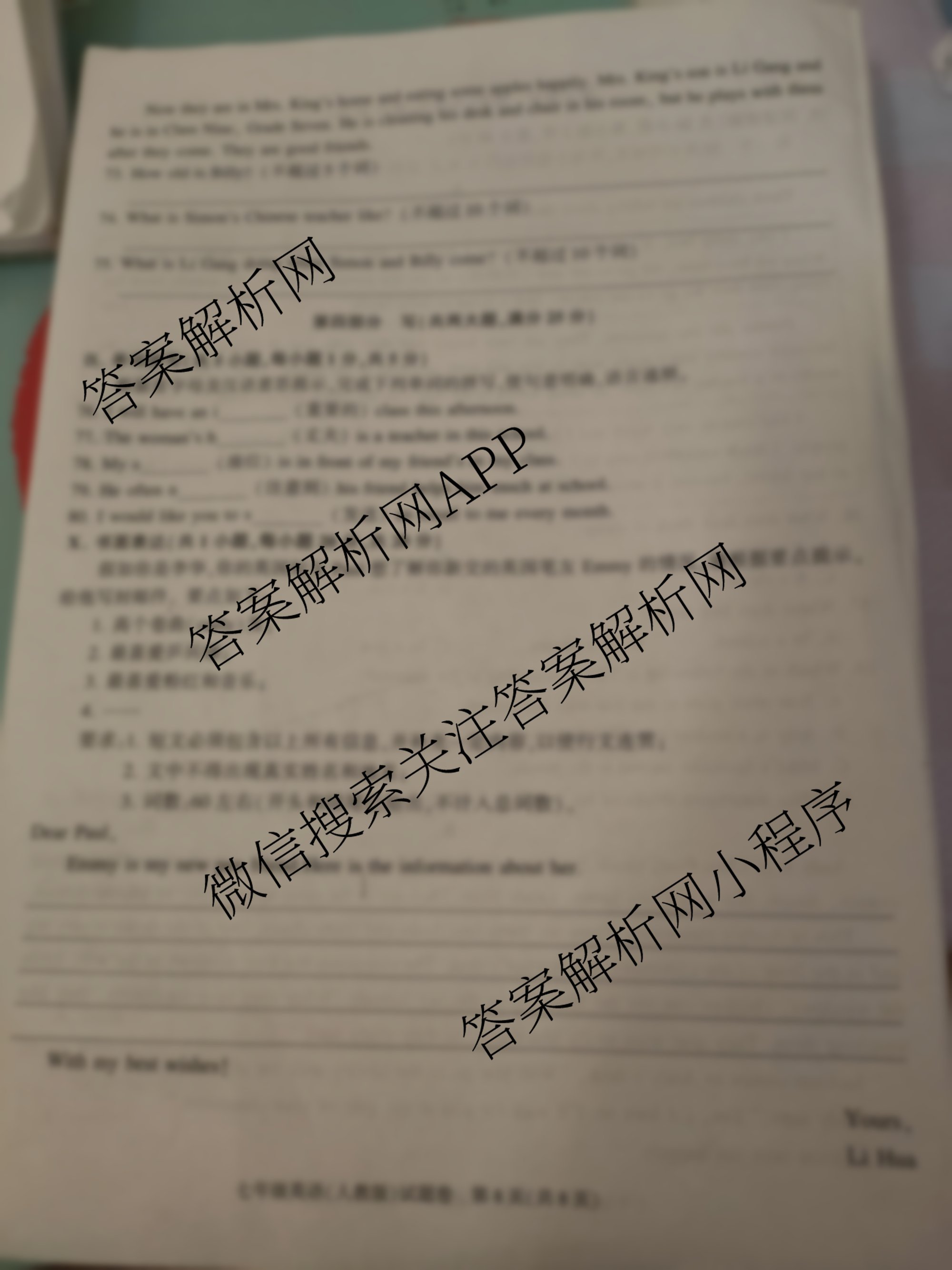 安徽省2024-2025学年七年级上学期期中教学质量调研(无标题)英语(人教版)试题,目前2026届炎德英才大联考答案网已经汇总了安徽省2024-2025学年七年级上学期期中教学质量调研(无标题)英语(人教版)试题的各科答案和试卷,获取更多安徽省教学质量调研答案解析,请在关注本站。