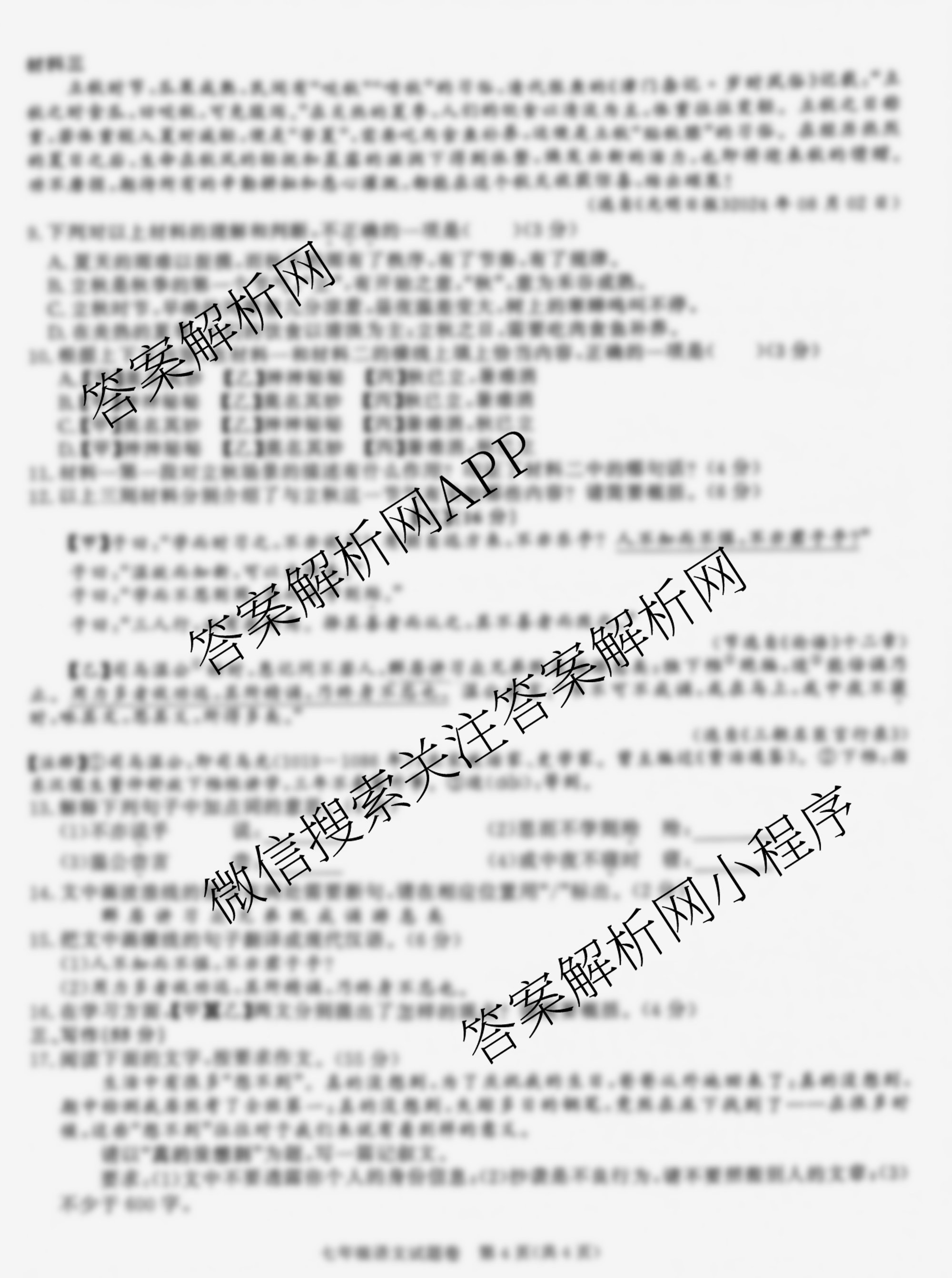 安徽省2024-2025学年七年级上学期期中教学质量调研(无标题)语文试题,目前2026届炎德英才大联考答案网已经汇总了安徽省2024-2025学年七年级上学期期中教学质量调研(无标题)语文试题的各科答案和试卷,获取更多安徽省教学质量调研答案解析,请在关注本站。