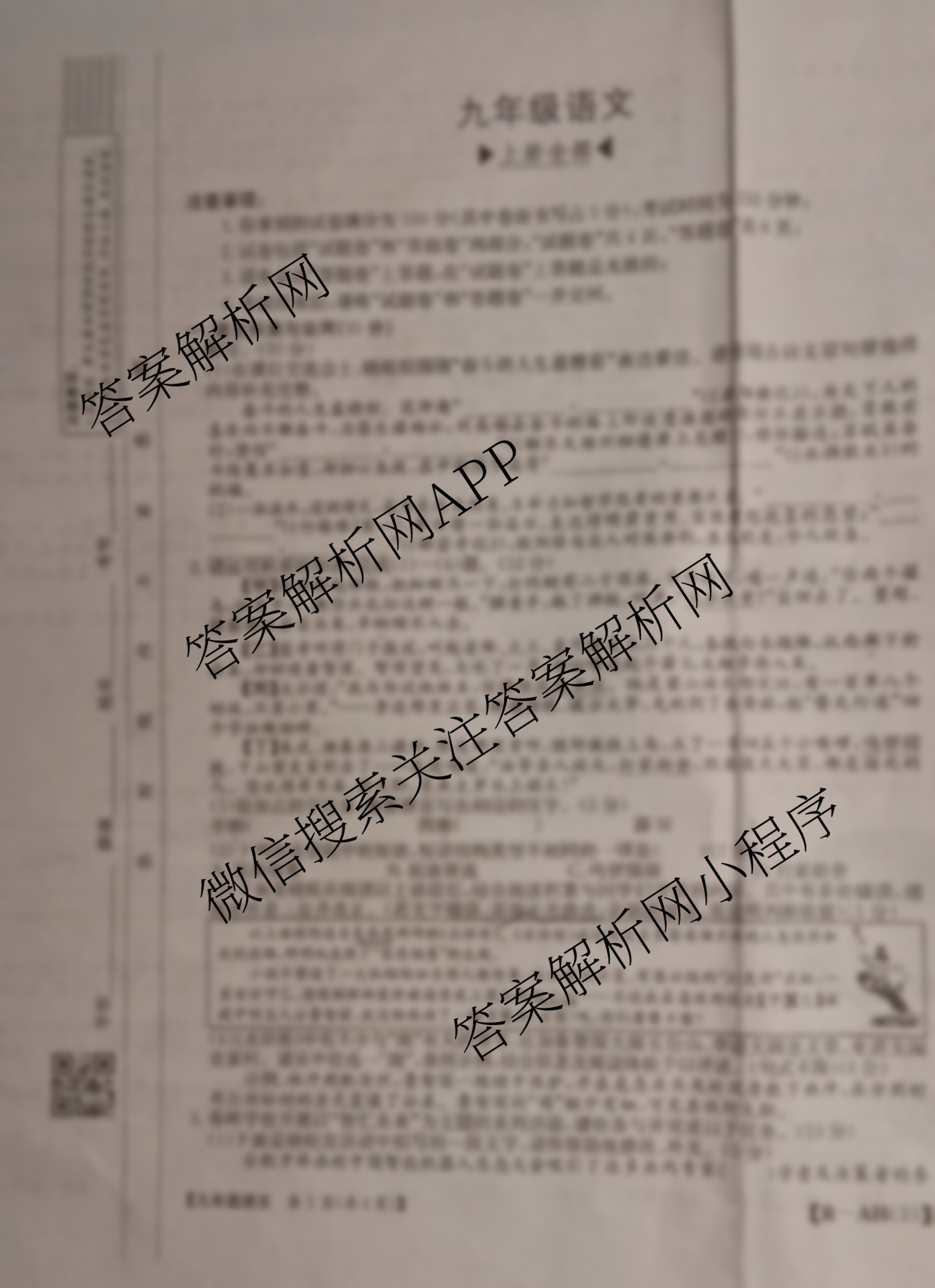 (九年级)安徽省2025届阶段评估(二)[AH(3)]语文(R)试题