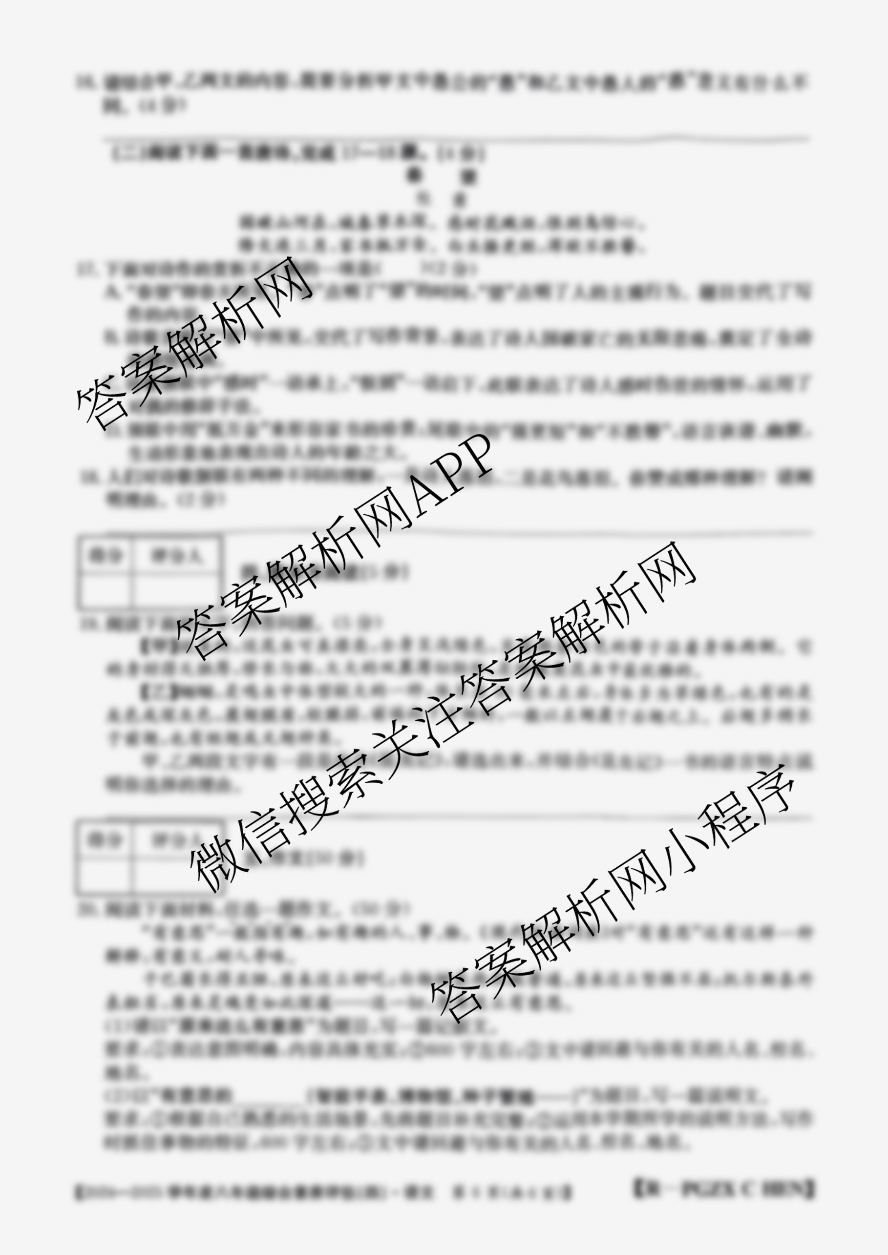 河南省2024~2025学年度八年级综合素养评估(四)[PGZXCHEN]语文(R)试题,目前2026届炎德英才大联考答案网已经汇总了河南省2024~2025学年度八年级综合素养评估(四)[PGZXCHEN]语文(R)试题的各科答案和试卷,获取更多初中阶段诊断答案解析,请在关注本站。