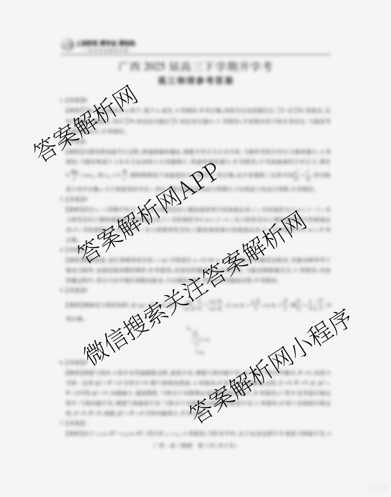 上进联考·广西2025届高三下学期开学考物理答案,目前2026届炎德英才大联考答案网已经汇总了上进联考·广西2025届高三下学期开学考物理答案的各科答案和试卷,获取更多上进联考答案解析,请在关注本站。