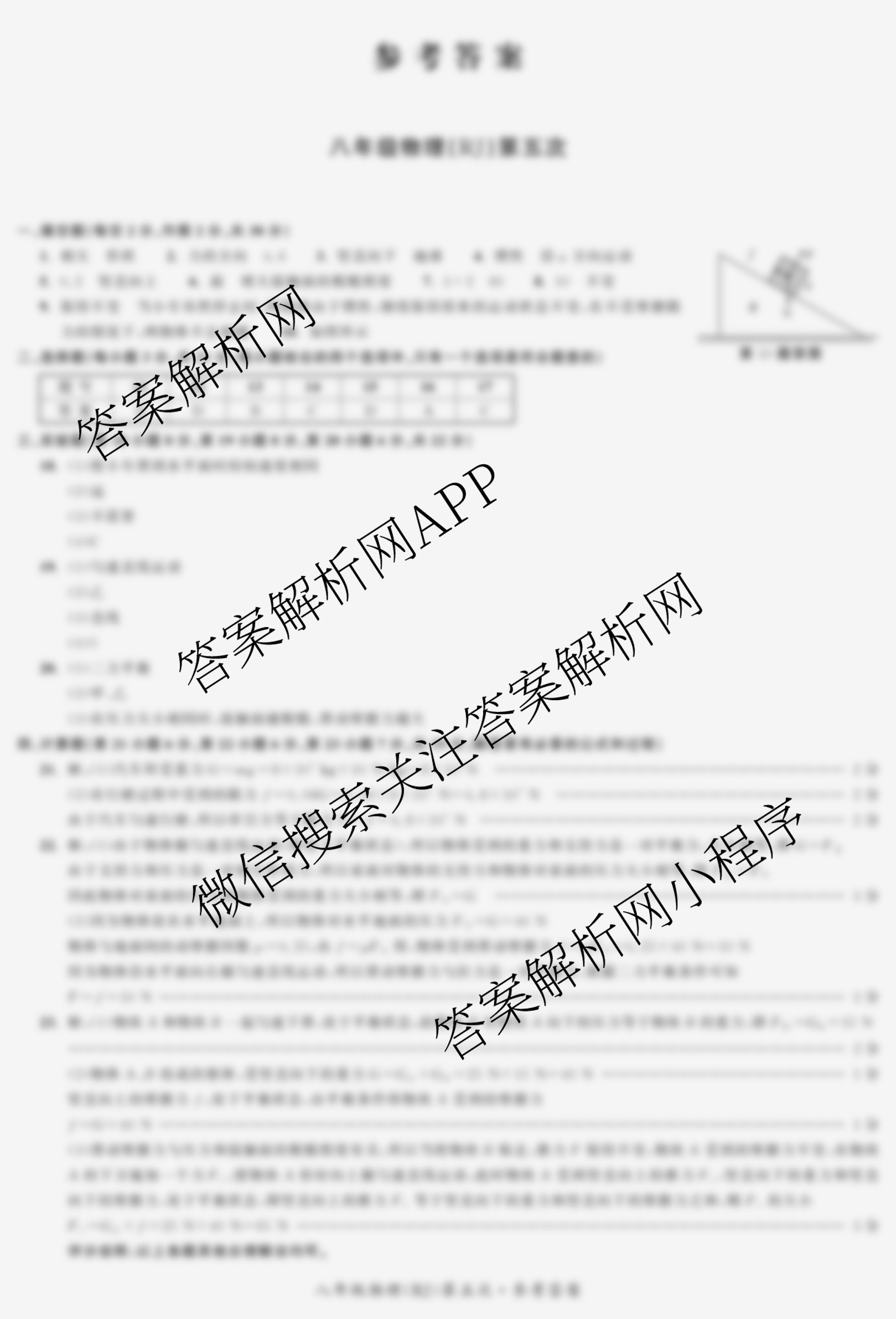 - 2024-2025[八年级]安徽省同步达标自主练习第五次物理(RJ)答案