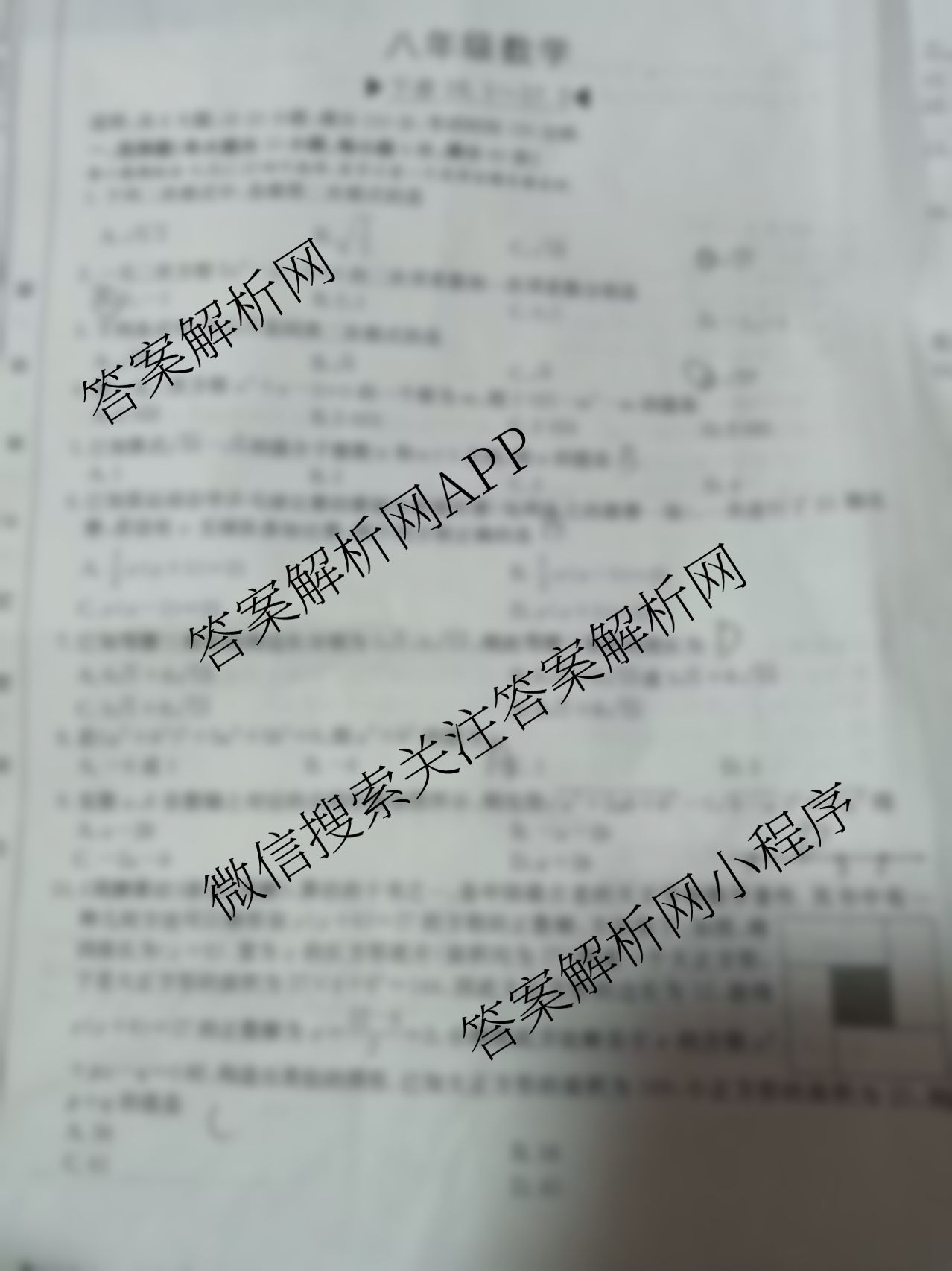 - 安徽省2025届[八年级]阶段评估(无标题)[AH(5)]数学(HKB)试题