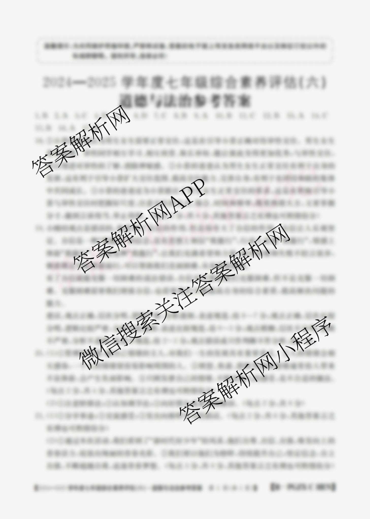 河南省2024~2025学年度七年级综合素养评估(六)[PGZXCHEN]道德与法治(R)答案,目前2026届炎德英才大联考答案网已经汇总了河南省2024~2025学年度七年级综合素养评估(六)[PGZXCHEN]道德与法治(R)答案的各科答案和试卷,获取更多初中阶段诊断答案解析,请在关注本站。
