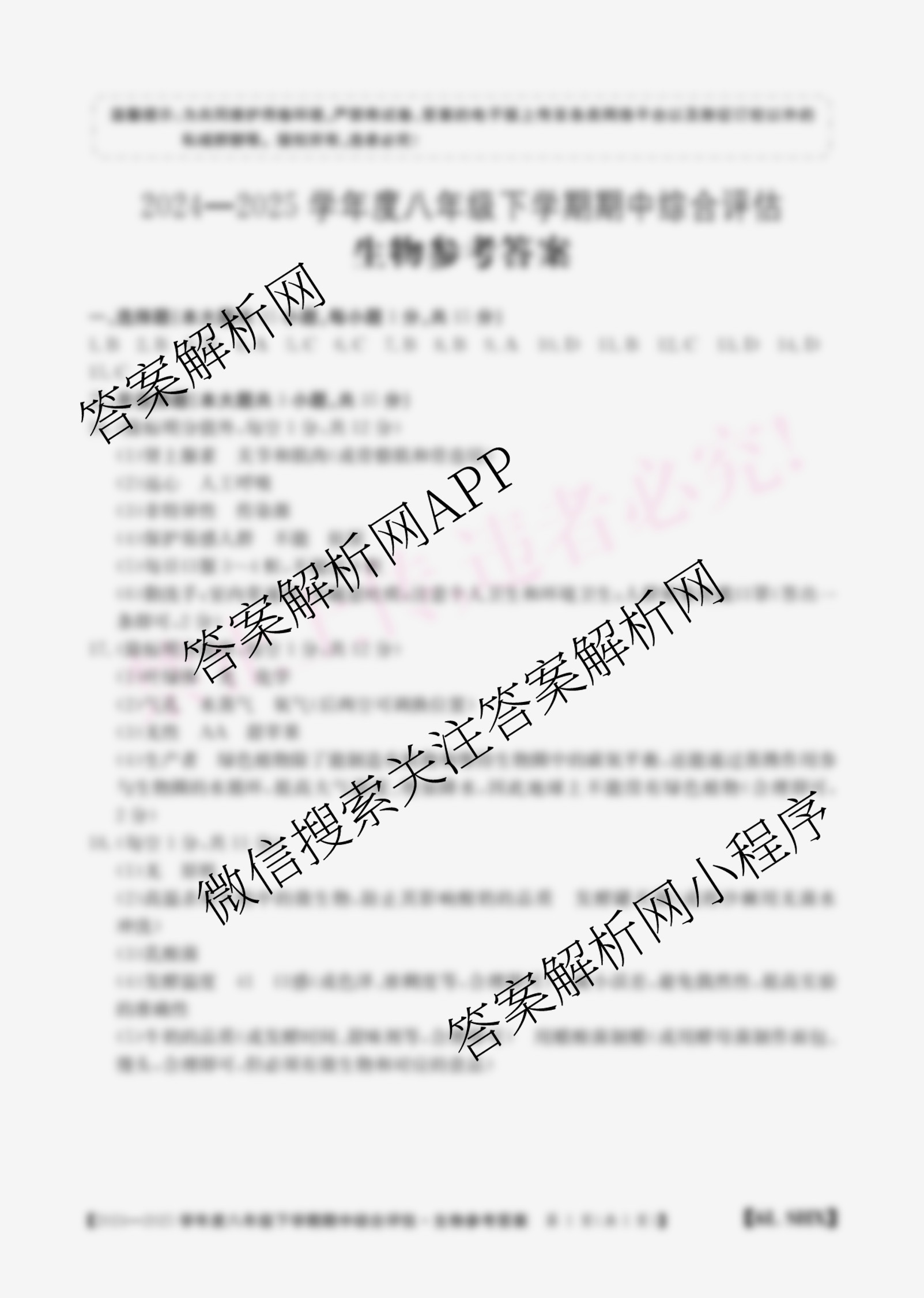 - (八年级)山西省2024~2025学年度下学期期中综合评估[6L-SHX]生物答案