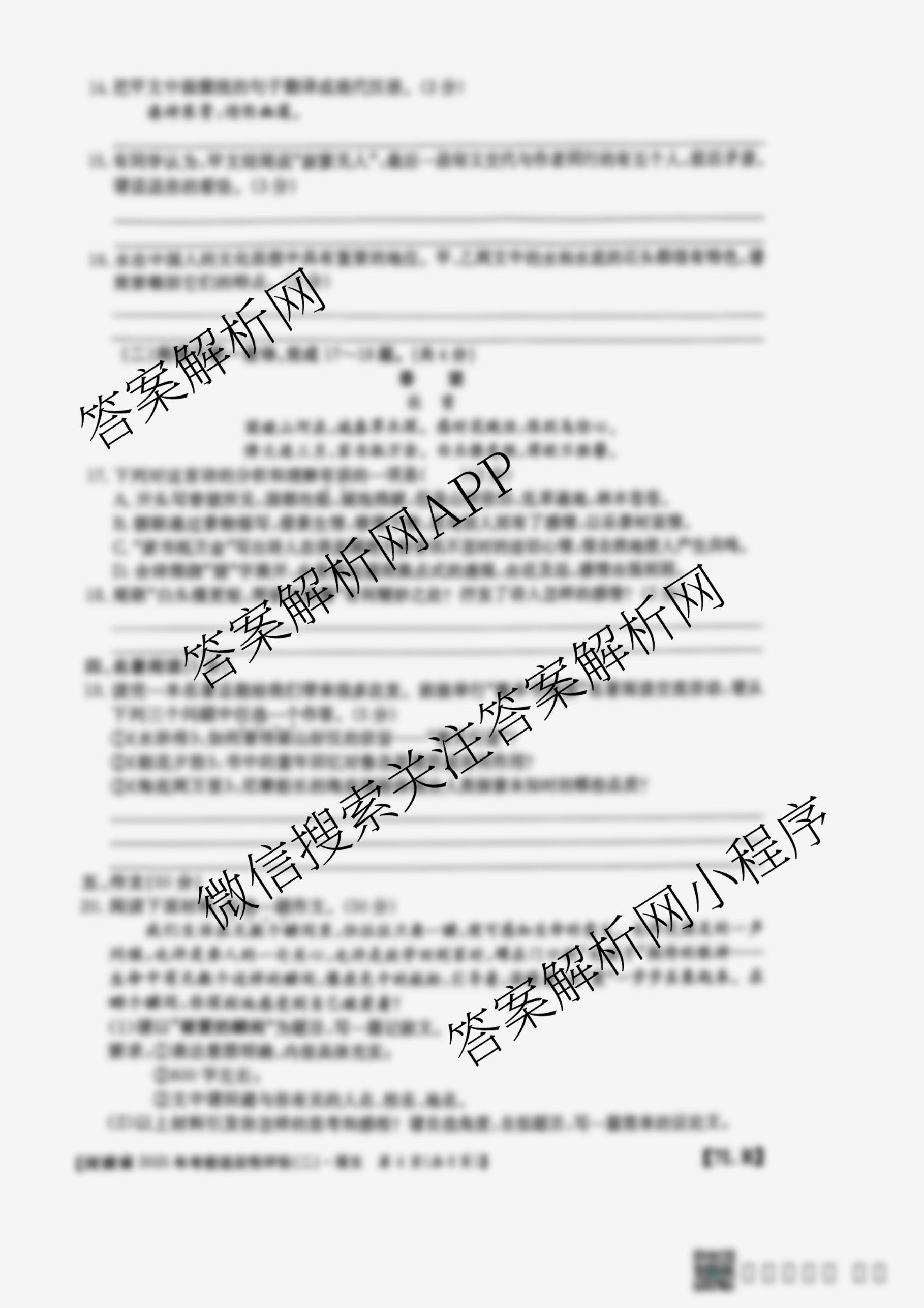 河南省2025年考前适应性评估(二)[7L]语文(R)试题,目前2026届炎德英才大联考答案网已经汇总了河南省2025年考前适应性评估(二)[7L]语文(R)试题的各科答案和试卷,获取更多初中阶段诊断答案解析,请在关注本站。