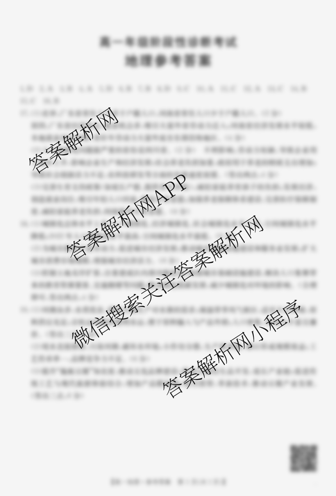 - 2024-2025甘肃省(高一)年级阶段性诊断考试(5.12)地理答案