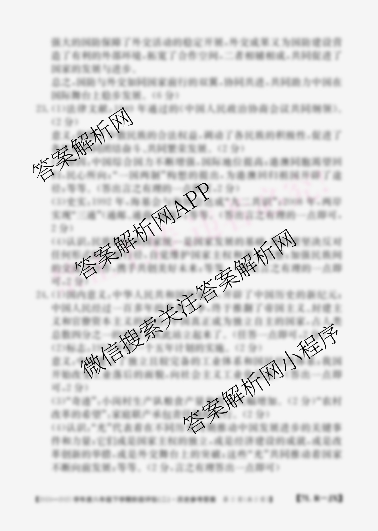 - 2024~2025(八年级)江西省学年度下学期阶段评估(二)[7L-JX]历史(R)答案