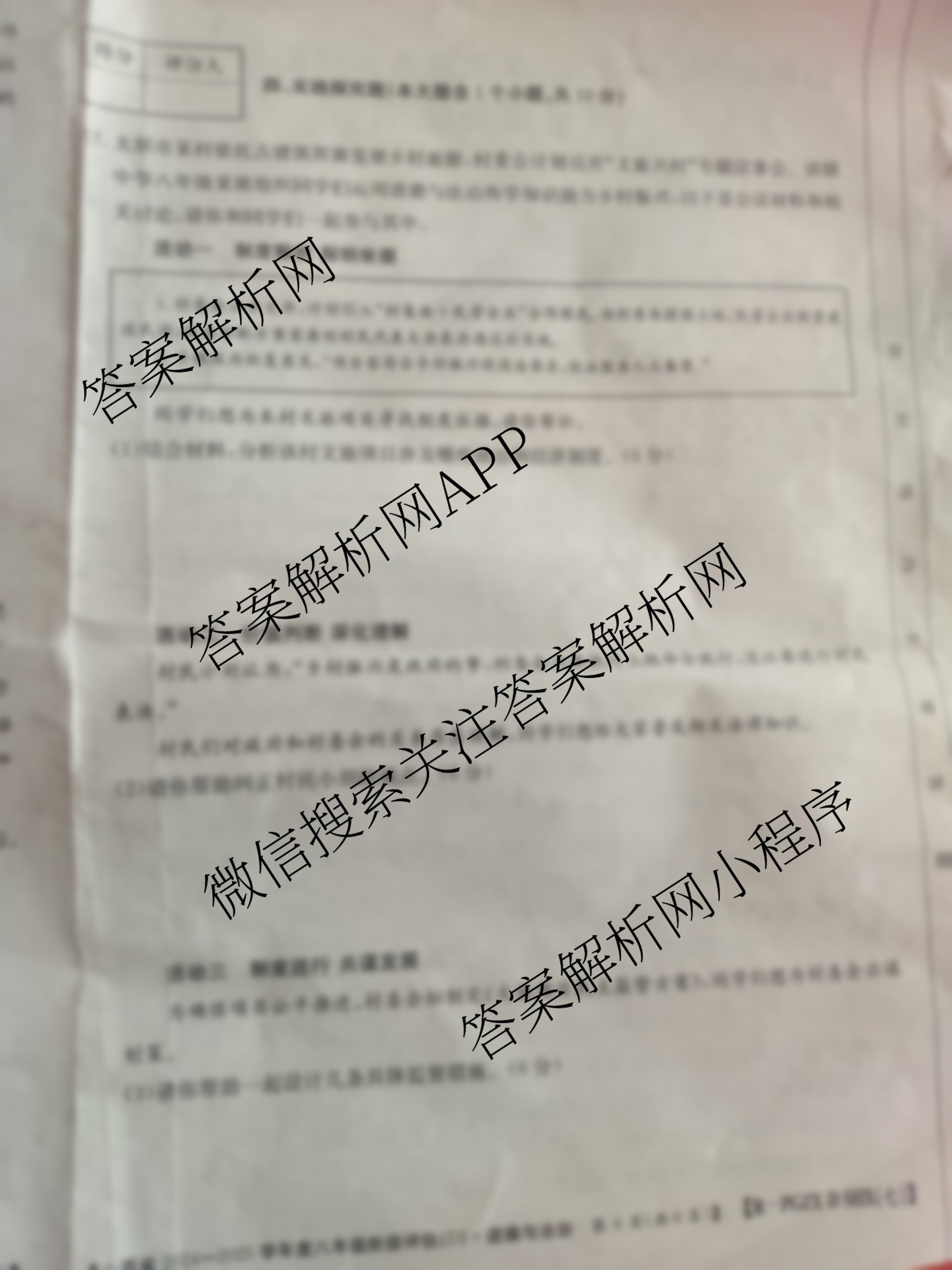 山西省2024~2025学年度八年级阶段评估(D)[PGZXDSHX(七)]道德与法治(R)试题,目前2026届炎德英才大联考答案网已经汇总了山西省2024~2025学年度八年级阶段评估(D)[PGZXDSHX(七)]道德与法治(R)试题的各科答案和试卷,获取更多初中阶段诊断答案解析,请在关注本站。