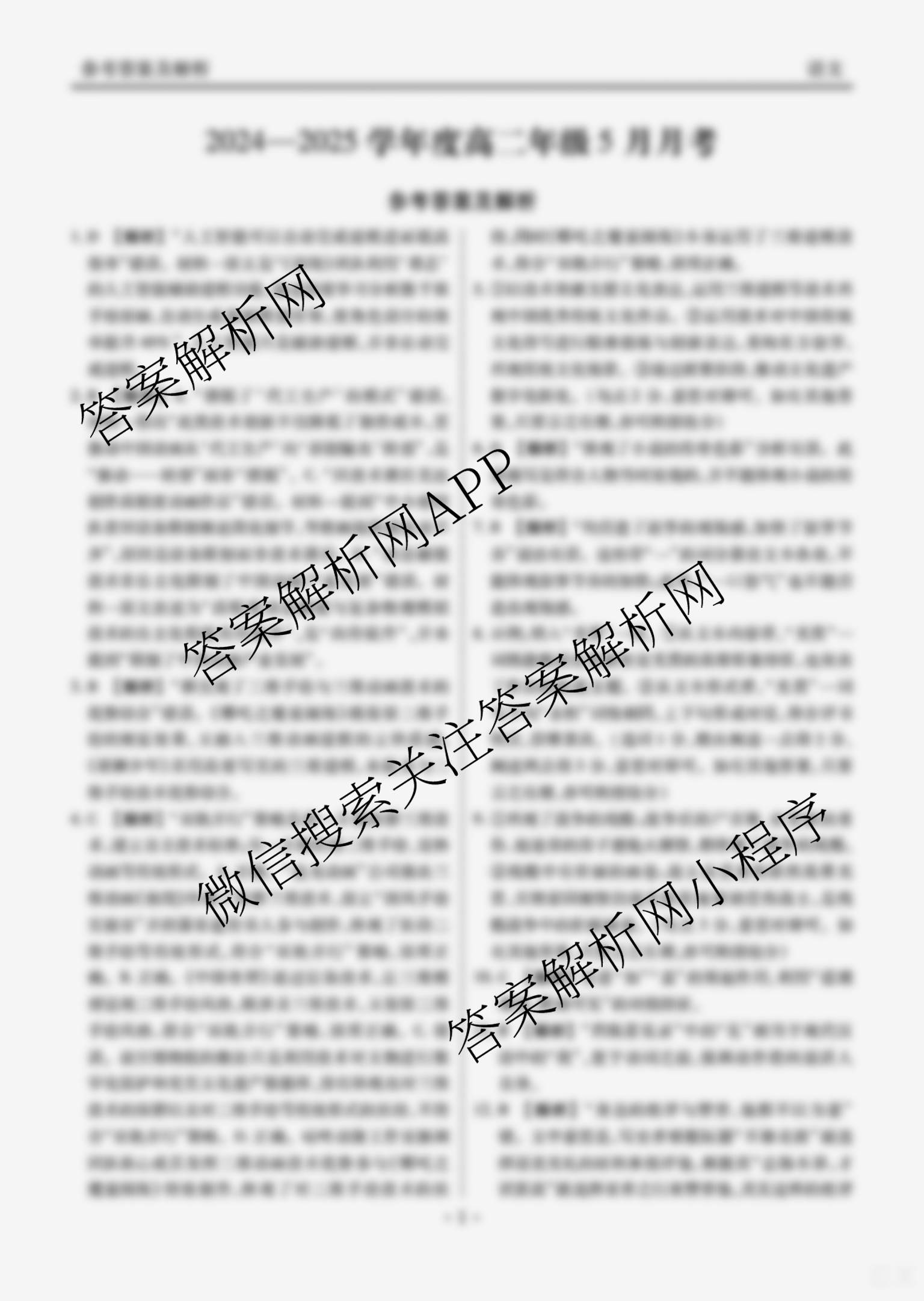 衡水大联考2024-2025学年度高二年级5月月考语文答案,目前2026届炎德英才大联考答案网已经汇总了衡水大联考2024-2025学年度高二年级5月月考语文答案的各科答案和试卷,获取更多衡水金卷先享题答案解析,请在关注本站。