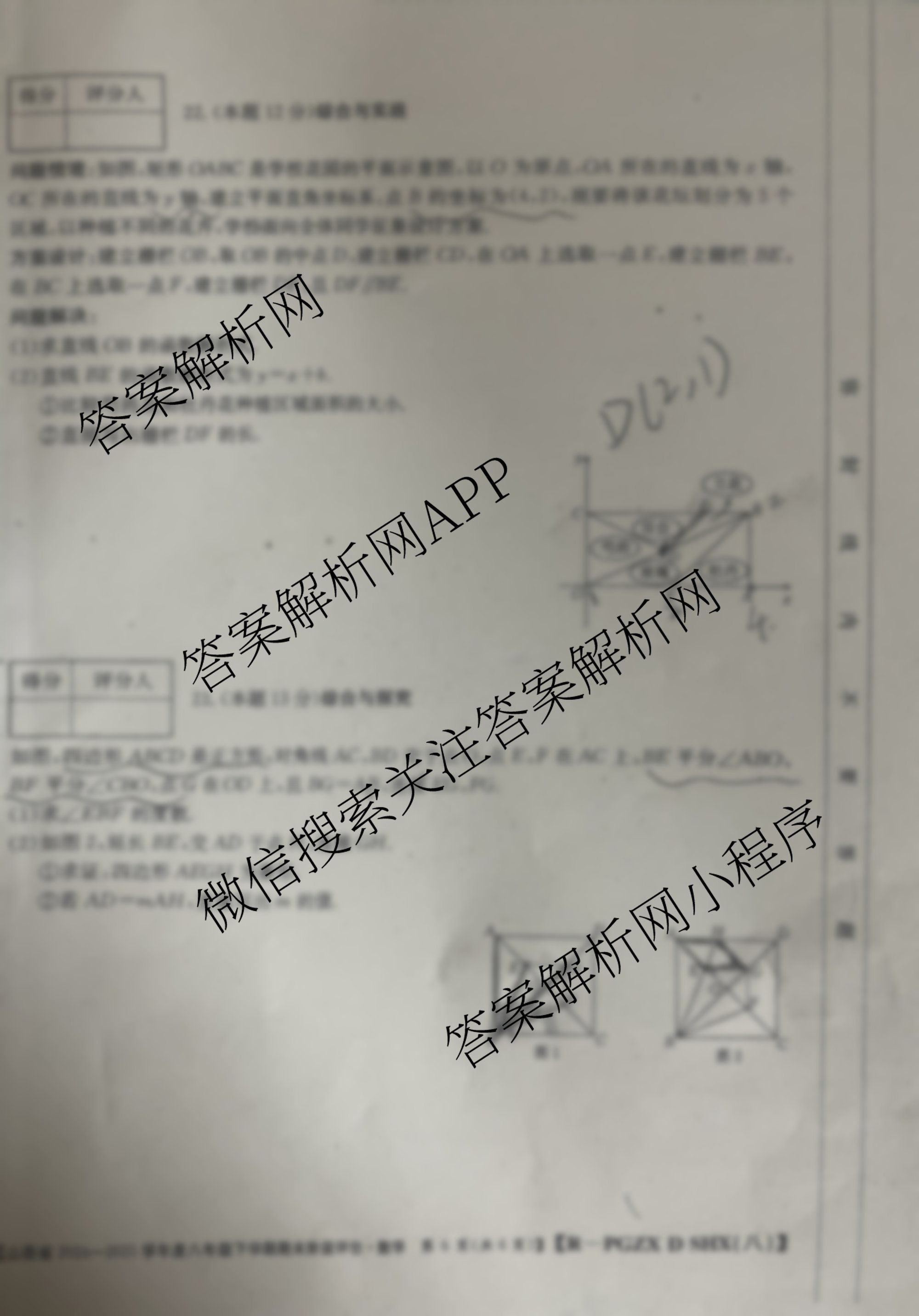 - [八年级]山西省2024-2025学年度下学期期末阶段评估[PGZXDSHX(八)]数学(HSD)答案