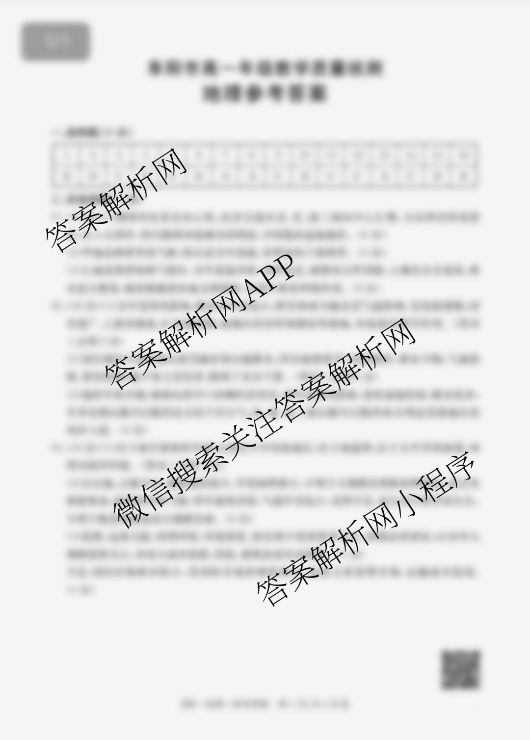 阜阳市2024~2025学年度高一年级教学质量统测地理答案,目前2026届炎德英才大联考答案网已经汇总了阜阳市2024~2025学年度高一年级教学质量统测地理答案的各科答案和试卷,获取更多金太阳大联考精品专辑答案解析,请在关注本站。