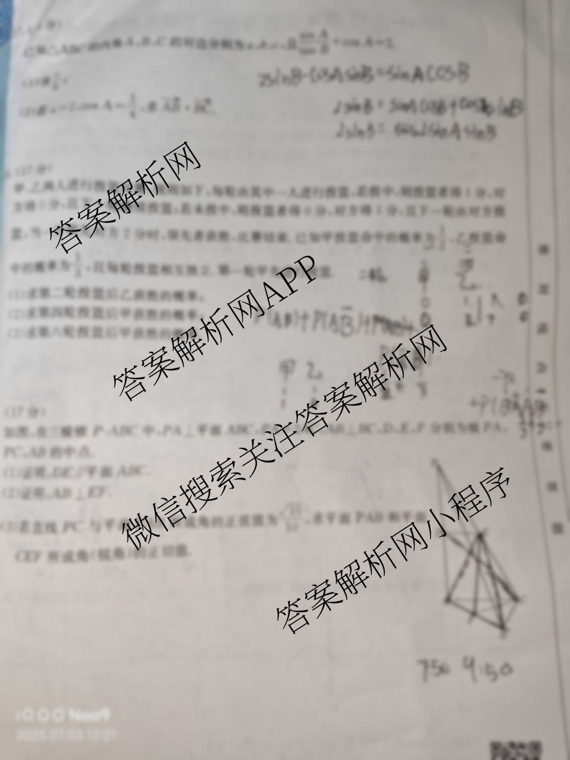 2024-2025学年山西省高一下学期期末考试(7.2)数学试题,目前2026届炎德英才大联考答案网已经汇总了2024-2025学年山西省高一下学期期末考试(7.2)数学试题的各科答案和试卷,获取更多金太阳大联考精品专辑答案解析,请在关注本站。
