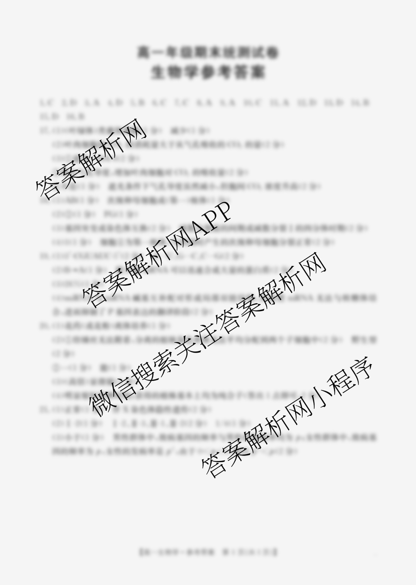 云南省2024~2025学年度下学期高一年级期末统测试卷(7.4)生物答案,目前2026届炎德英才大联考答案网已经汇总了云南省2024~2025学年度下学期高一年级期末统测试卷(7.4)生物答案的各科答案和试卷,获取更多金太阳大联考精品专辑答案解析,请在关注本站。