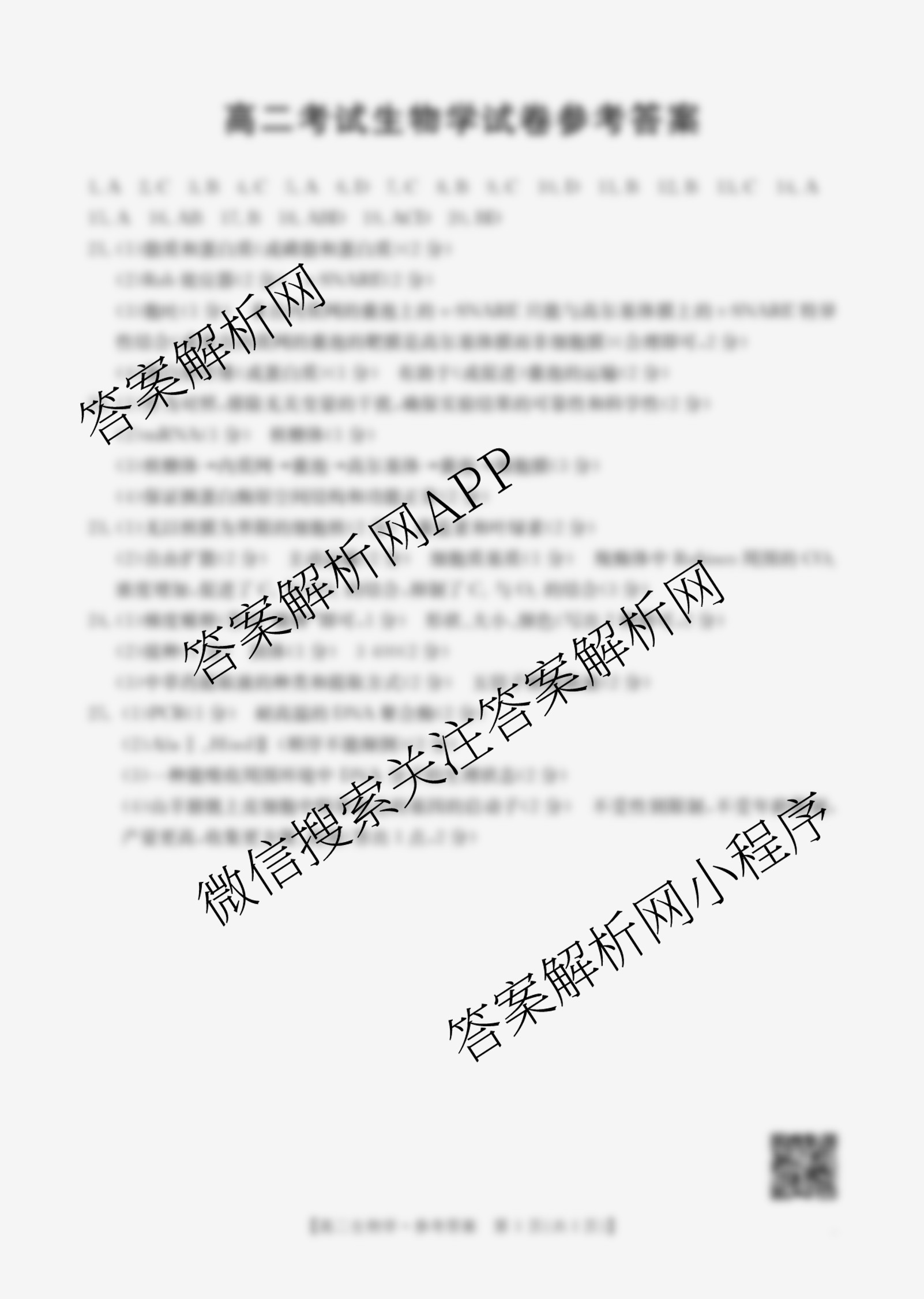辽宁省2025年高二考试(7.8)生物答案,目前2026届炎德英才大联考答案网已经汇总了辽宁省2025年高二考试(7.8)生物答案的各科答案和试卷,获取更多金太阳大联考精品专辑答案解析,请在关注本站。