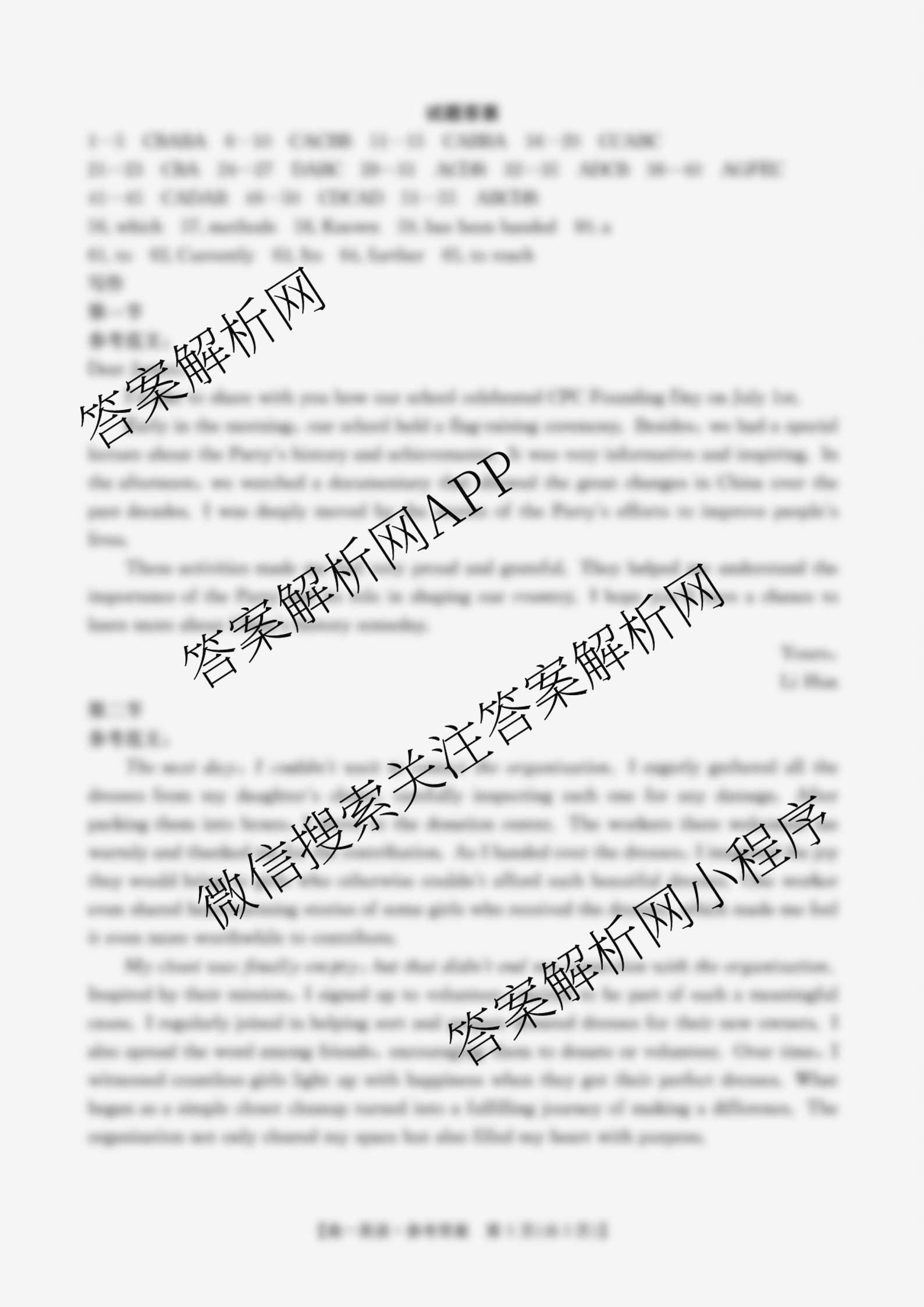2024~2025[高一]吉林省学年期末考试试卷(7.13)英语答案