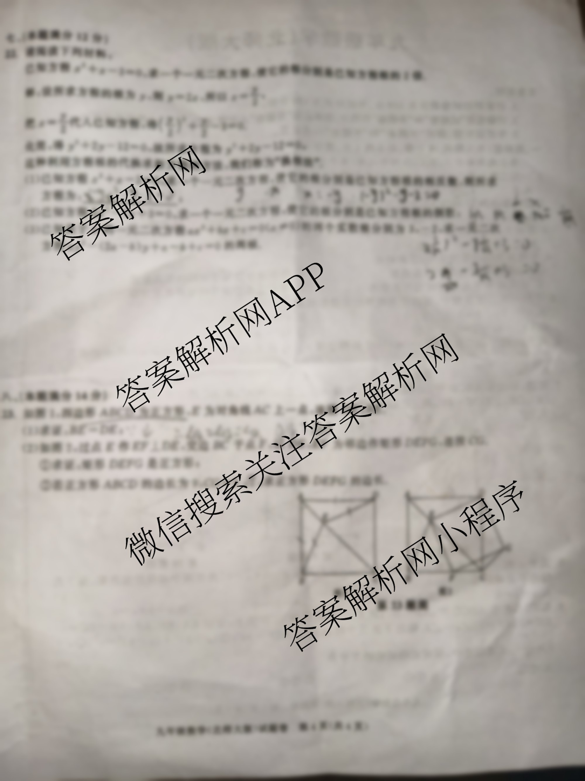- 2025~2026安徽省学年九年级上学期教学质量调研(一)A卷(无标题)数学(北师大版)试题