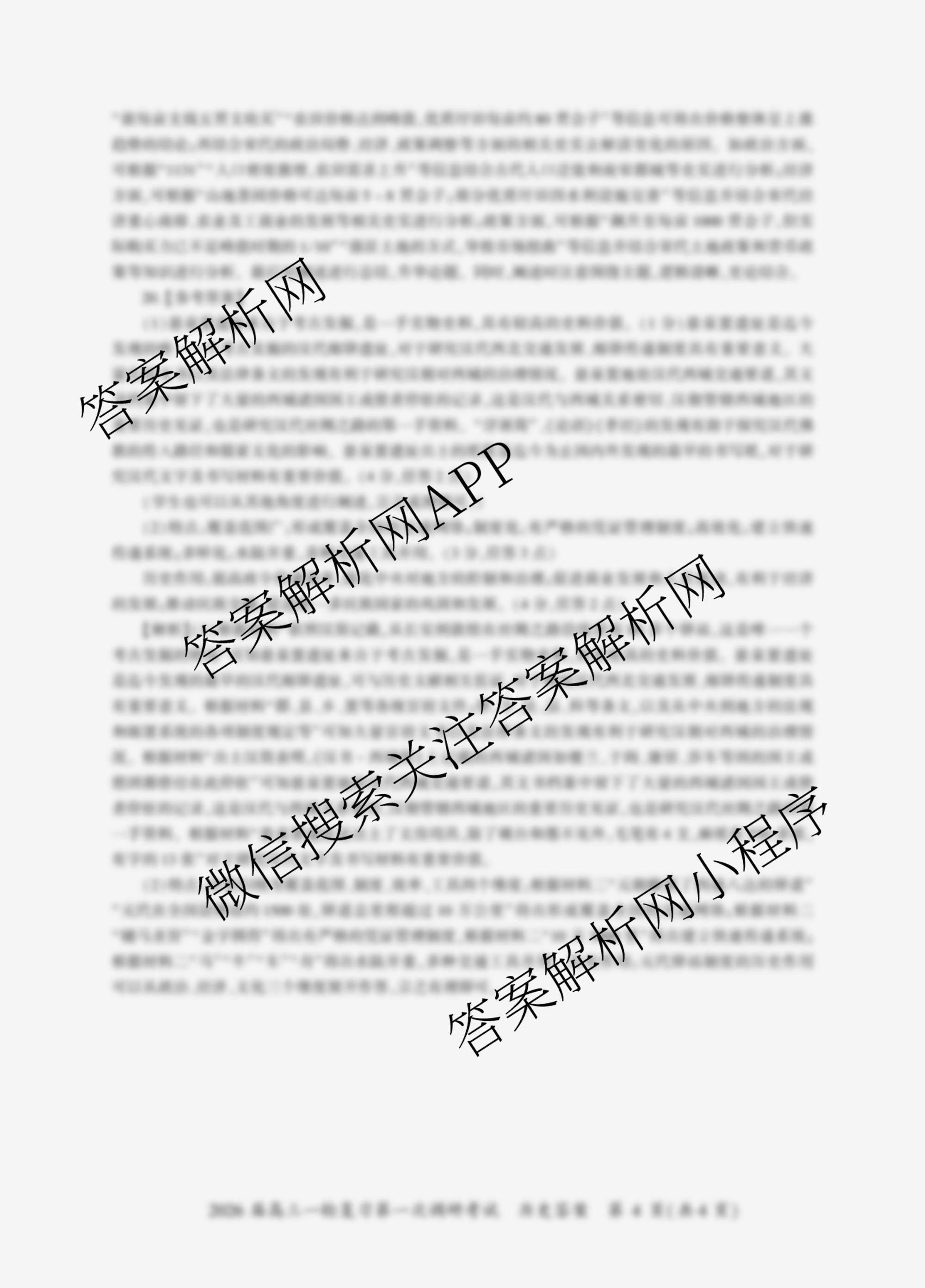 - 2026届(高三)百师联盟·一轮复习第一次调研考试(一)1历史(百N)答案