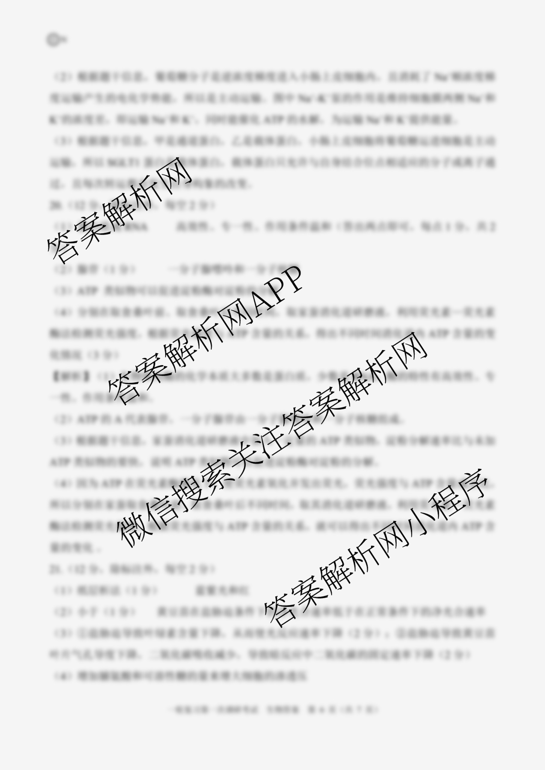 - 2026届[高三]百师联盟·一轮复习第一次调研考试(一)1生物(百N)答案
